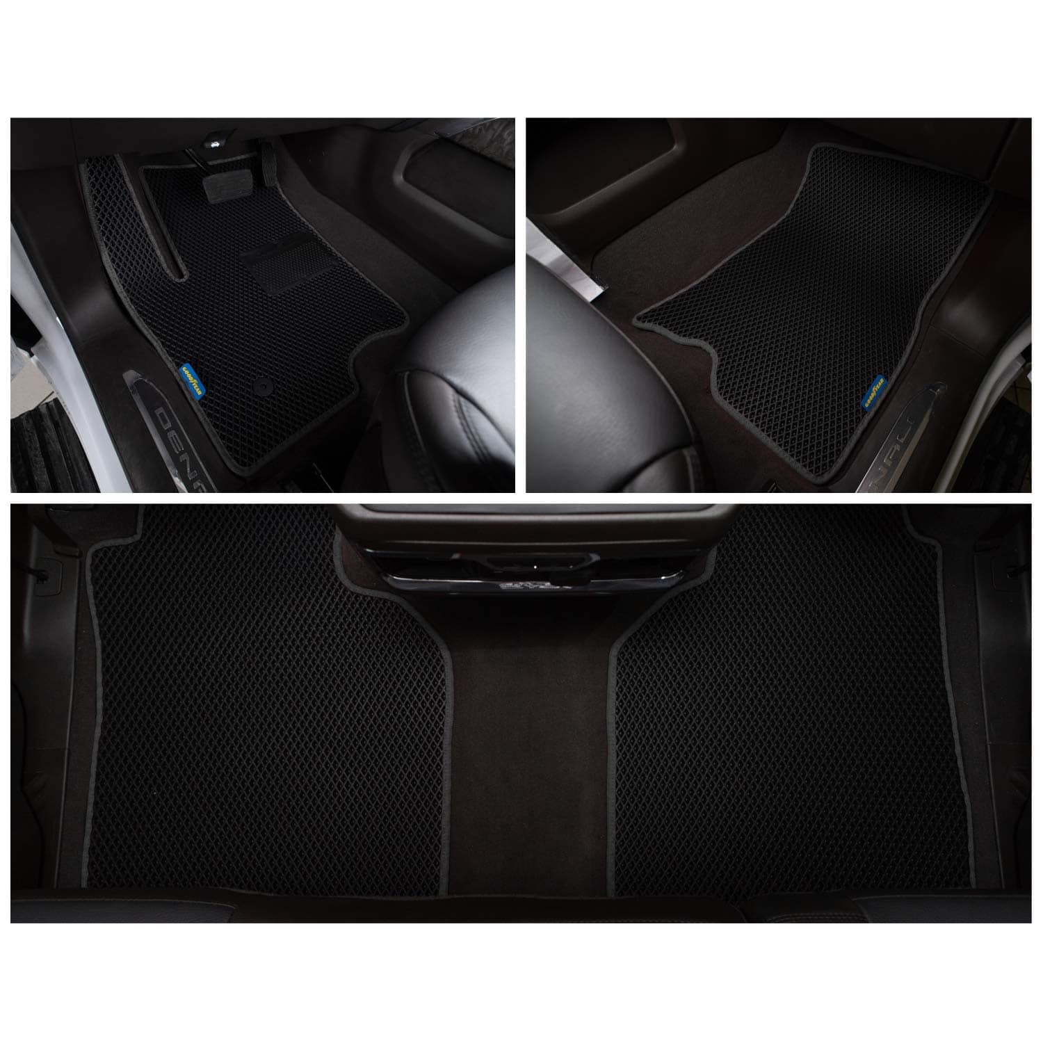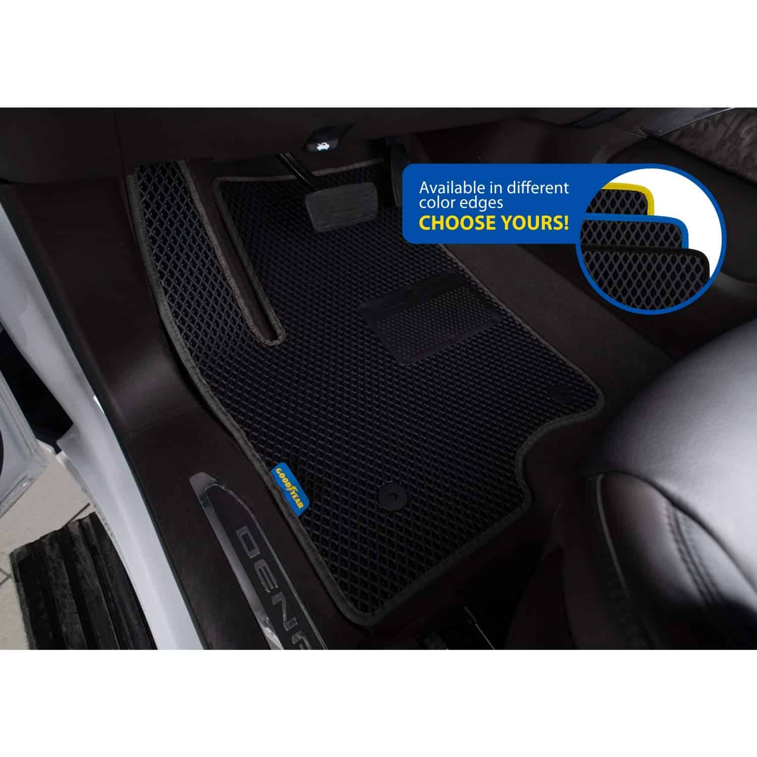 Las cubiertas de piso para automóvil personalizadas Goodyear están diseñadas para adaptarse al interior de su camioneta con una precisión inigualable. Estas cubiertas de piso se ajustan a Chevrolet (Chevy) Silverado 1500 2019-2024 Crew Cab y a GMC Sierra 1500 2019-2024 Crew Cab con piso alfombrado, asientos de cubo en la 1ra fila y sin caja de almacenamiento debajo del asiento trasero con alfombra. Proporcionan una protección excepcional contra zapatos sucios, lluvia, derrames de líquidos, polvo y suciedad, además de desorden general. Las cubiertas de piso incluyen un cojín de talón de termoplástico en el área de control de los pedales para reducir el desgaste del piso y tienen una resistencia a la temperatura de-40 F a 122 F para adaptarse a cualquier clima. El respaldo antideslizante con sujetadores evita que las cubiertas de piso se deslicen o se agrupen, mejorando la protección del piso. La tecnología de forma de diamante permite una limpieza rápida sacudiendo las cubiertas o una limpieza a presión con agua y una lavadora a presión.