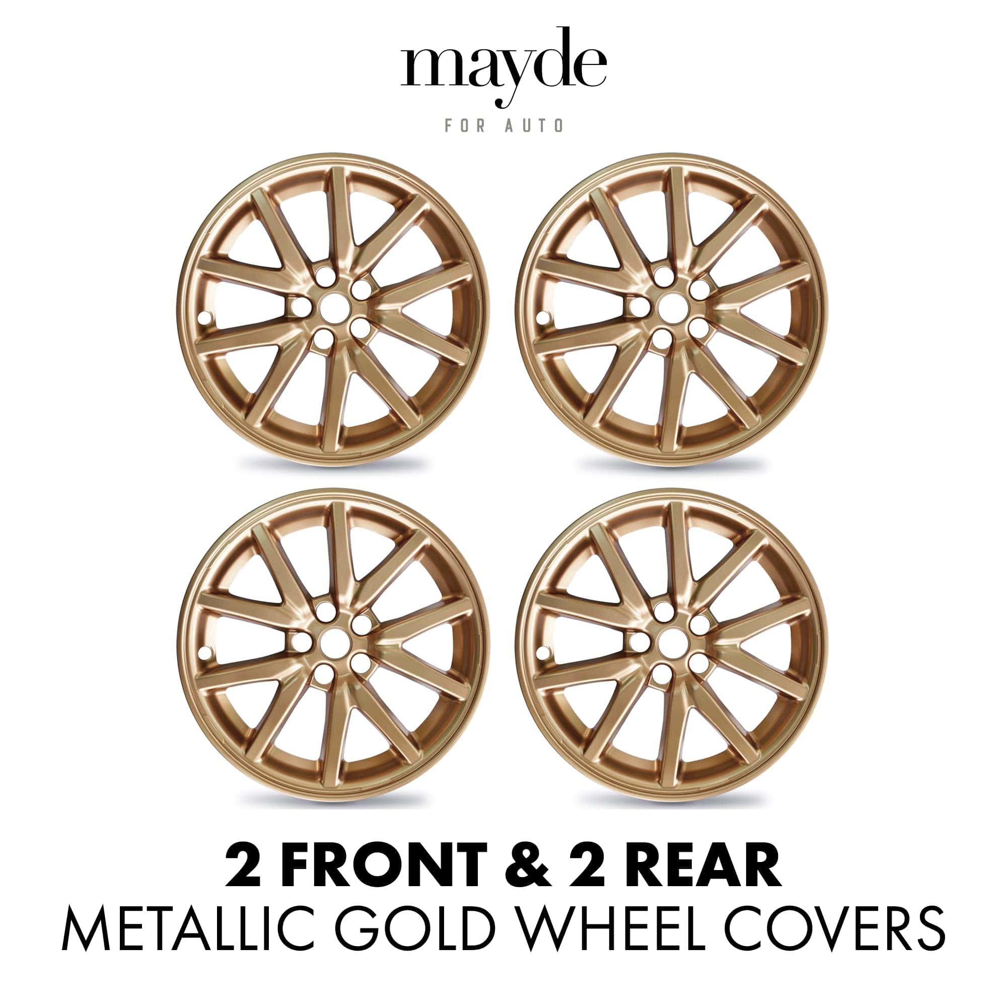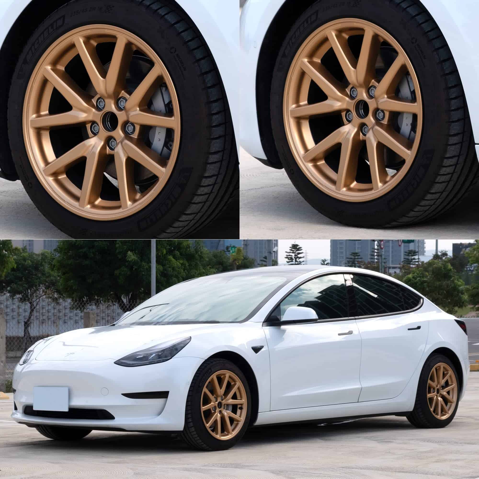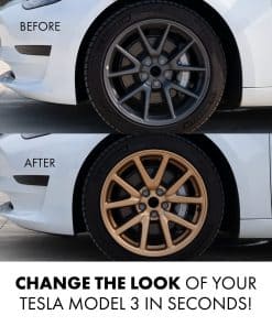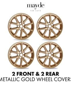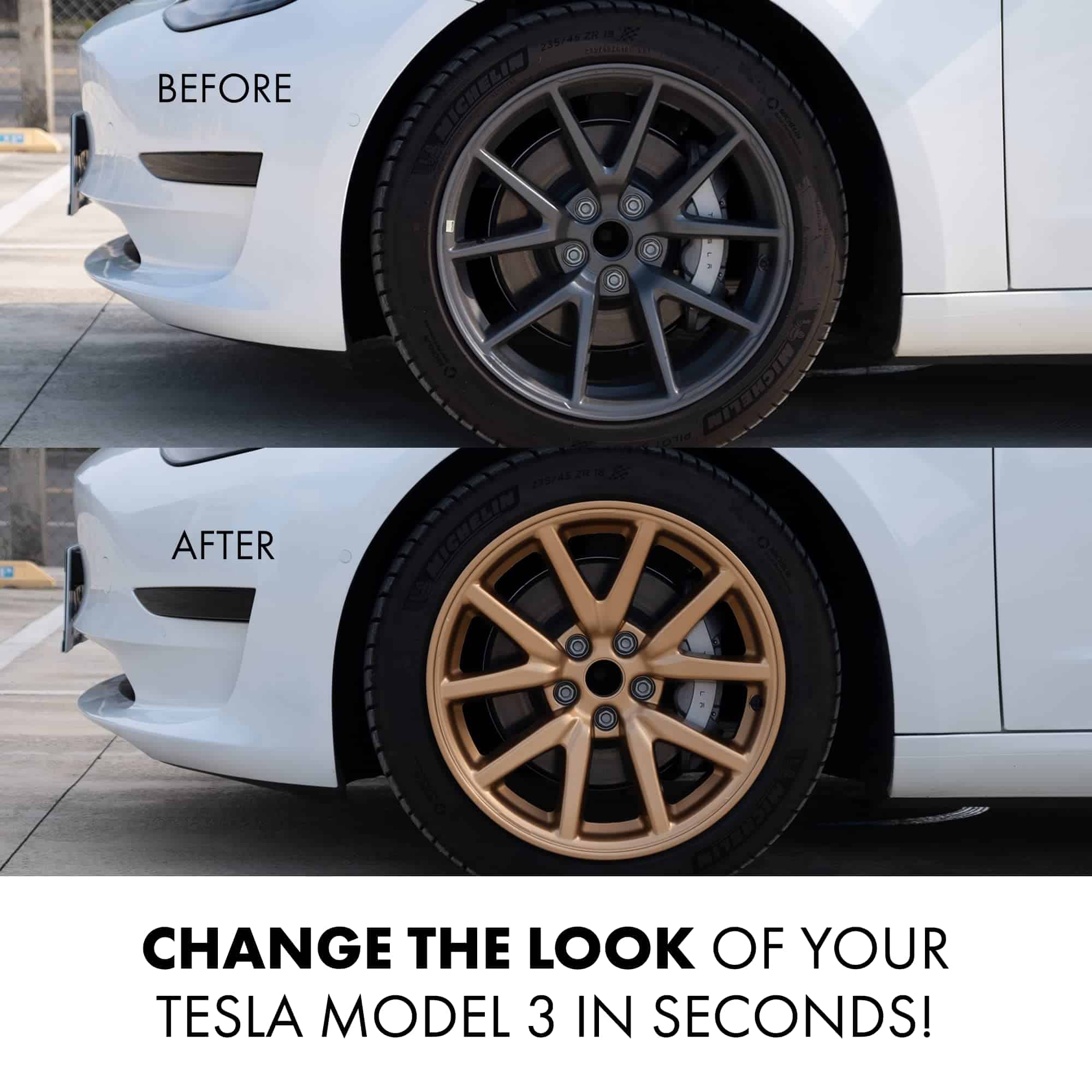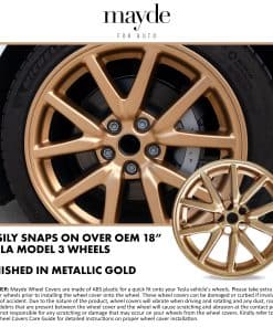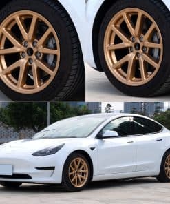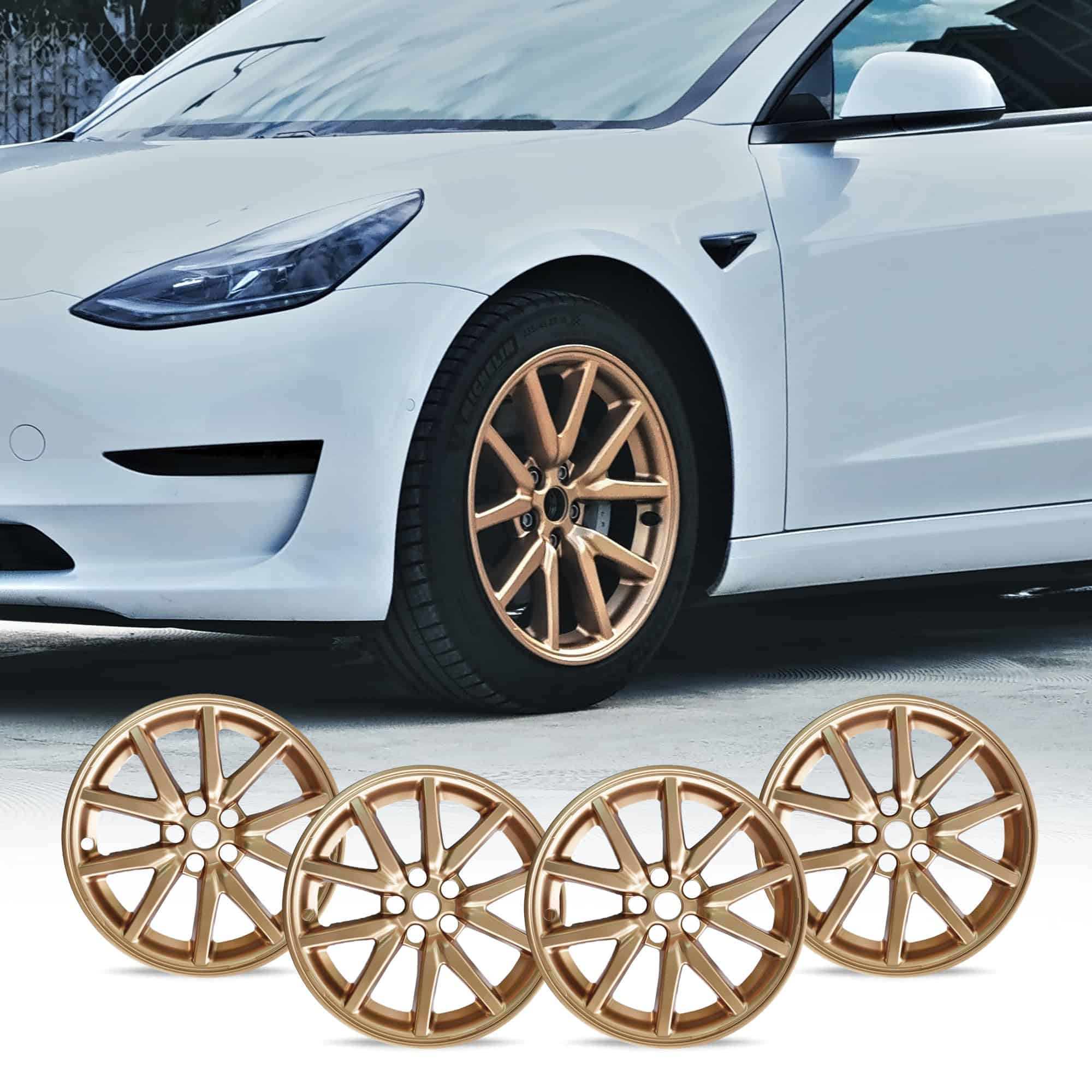 Cambia rápidamente la apariencia de tu Tesla Model 3 2017-2022 con estas cubiertas de ruedas Mayde de 18 pulgadas. Cada kit incluye 4 tapacubos que se ajustan perfectamente a tu Tesla Model 3, proporcionando una apariencia elegante y protección a tus ruedas. Fáciles de instalar, se ajustan en su lugar rápidamente. Los tapacubos de color dorado metálico de Mayde permiten cambiar el color de tus ruedas de forma sencilla. Pares idealmente con kits de tapas centrales, pero ten en cuenta que la tapa central no está incluida en este kit. Además, estos tapacubos se extienden hasta la llanta, ocultando roces pasados en el bordillo para una apariencia impecable.