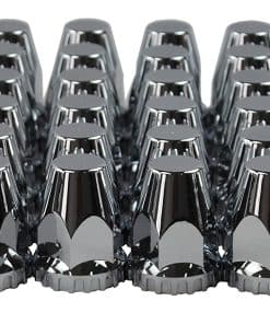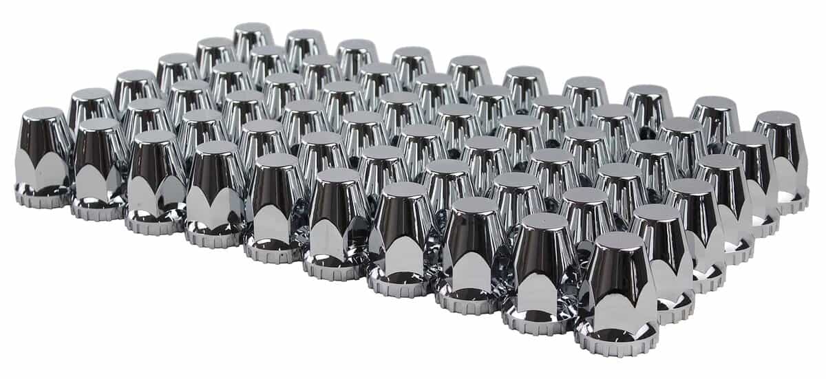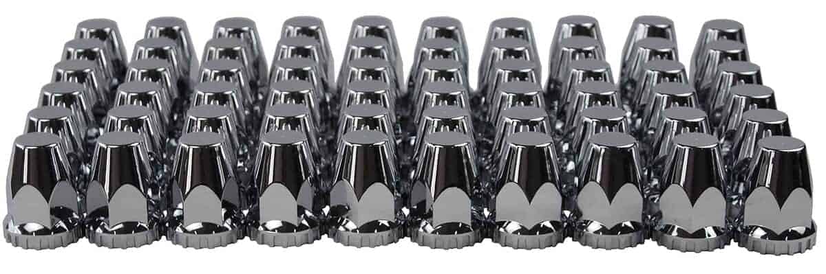 Cubiertas de Tuerca Estándar de Plástico ABS Cromado de 33 mm de JIUXI para Camiones Semirremolque. Estas cubiertas de tuercas están fabricadas con plástico ABS de alta calidad y cromado para garantizar durabilidad y resistencia a la intemperie. Se adaptan a tuercas de 33 mm de diámetro con brida y tienen una altura de 2 7/8». El paquete incluye 60 cubiertas de tuercas estándar que se pueden instalar fácilmente con la ayuda de la herramienta para cubiertas de tuercas. Renueva el aspecto de tus ruedas de camión semirremolque con estas cubiertas de tuercas elegantes y funcionales de JIUXI.