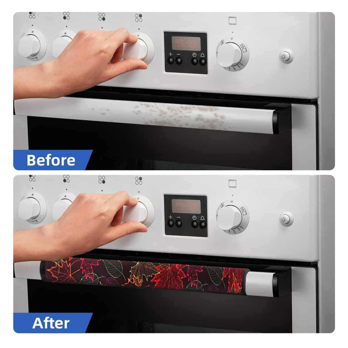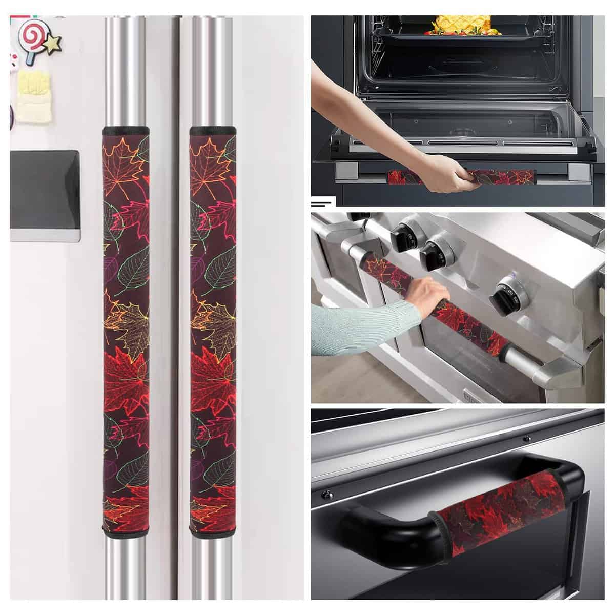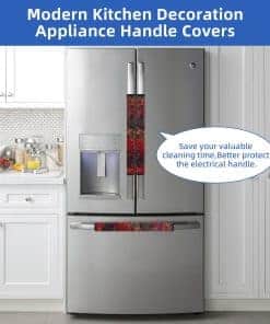 Protectores resistentes para manijas de puertas de refrigerador y otros electrodomésticos de cocina. Elástico y antideslizante para un ajuste seguro. Diseños decorativos únicos para añadir un toque elegante a la decoración de tu cocina. Compatibles con manijas estándar de neveras, microondas, hornos, gabinetes y lavavajillas. Fácil de mantener y lavable a máquina. Soporte al cliente dedicado para cualquier inquietud.