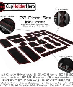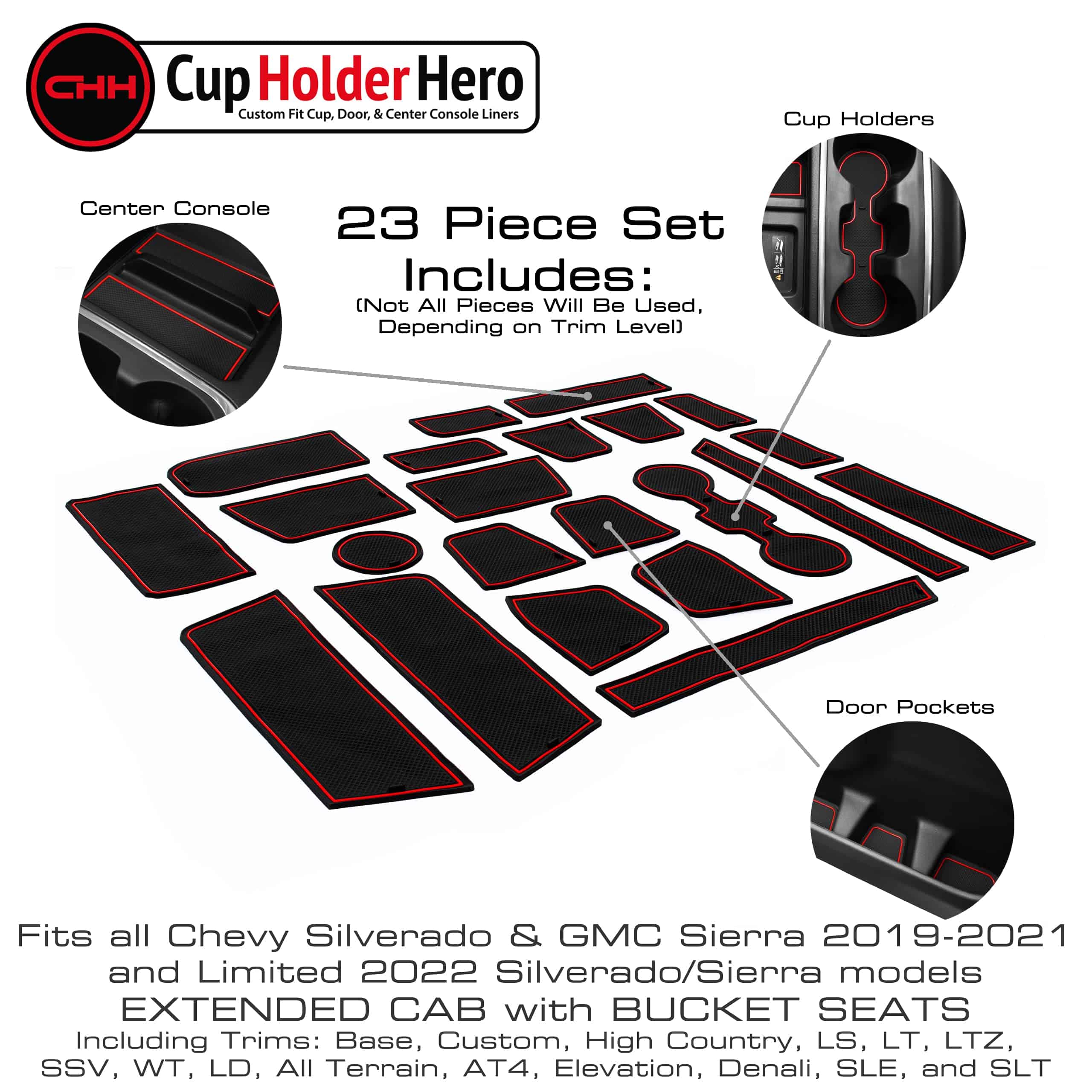 Confíe en los toques finales adecuados para el interior de su vehículo que hacen que cada viaje sea cómodo y conveniente. Las alfombrillas y portavasos personalizados para Chevy Silverado o GMC Sierra se ven increíbles mientras mantienen sus compartimentos ordenados, pulcros y sujetando los objetos en su lugar. El juego de 23 piezas sirve como excelente protección y ofrece tranquilidad. Se ajusta a modelos específicos de Chevy Silverado 1500, 1500 LTD y GMC Sierra 1500, 1500 Limited 2019-2022. Ayuda a mantener el vehículo libre de derrames, polvo y suciedad.
