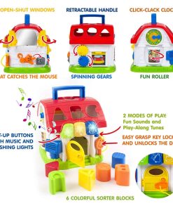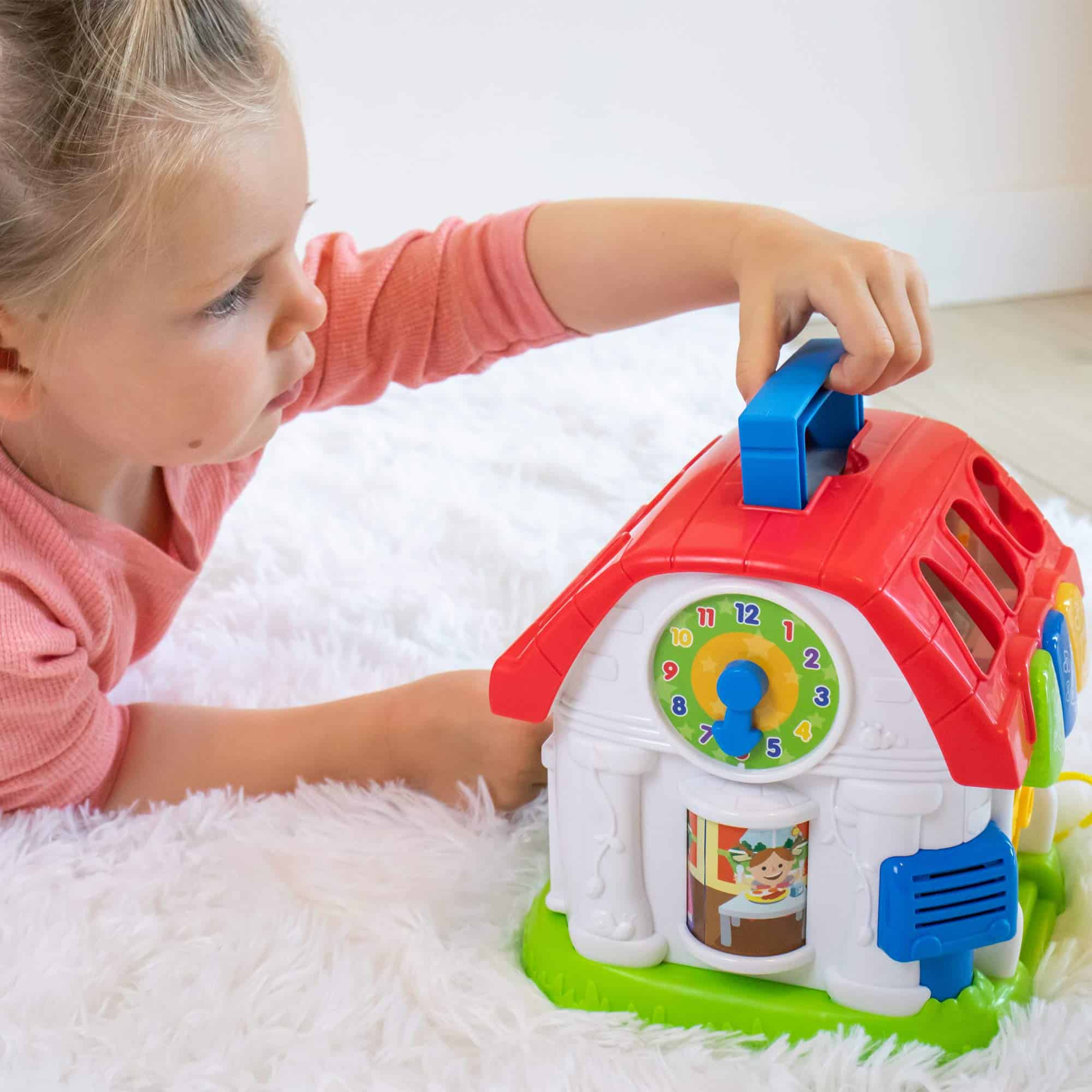 4. JUGUETES DE DESARROLLO – Este cubo de actividades para bebés de 6 a 12 meses ofrece mucho a medida que los niños crecen, dominarán nuevas habilidades, como desbloquear la puerta con la llave adjunta y comenzarán a usar la casa en juegos de imaginación.
