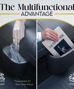 1. ADHERENCIA SEGURA- Mantén tu auto organizado y ordenado con nuestro innovador cubo de basura para auto que cuenta con cintas de gancho para una sujeción segura a superficies verticales de alfombra. Previene el deslizamiento y el vuelco, asegurando una experiencia de conducción sin desorden. Perfecto para tu Tesla, Toyota, Honda. Nota: La superficie de la alfombra debe tener fibras en bucle para que la cinta de gancho se adhiera.