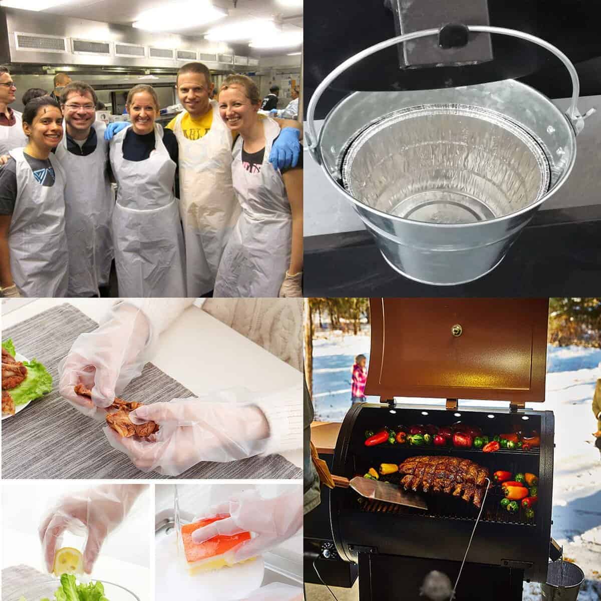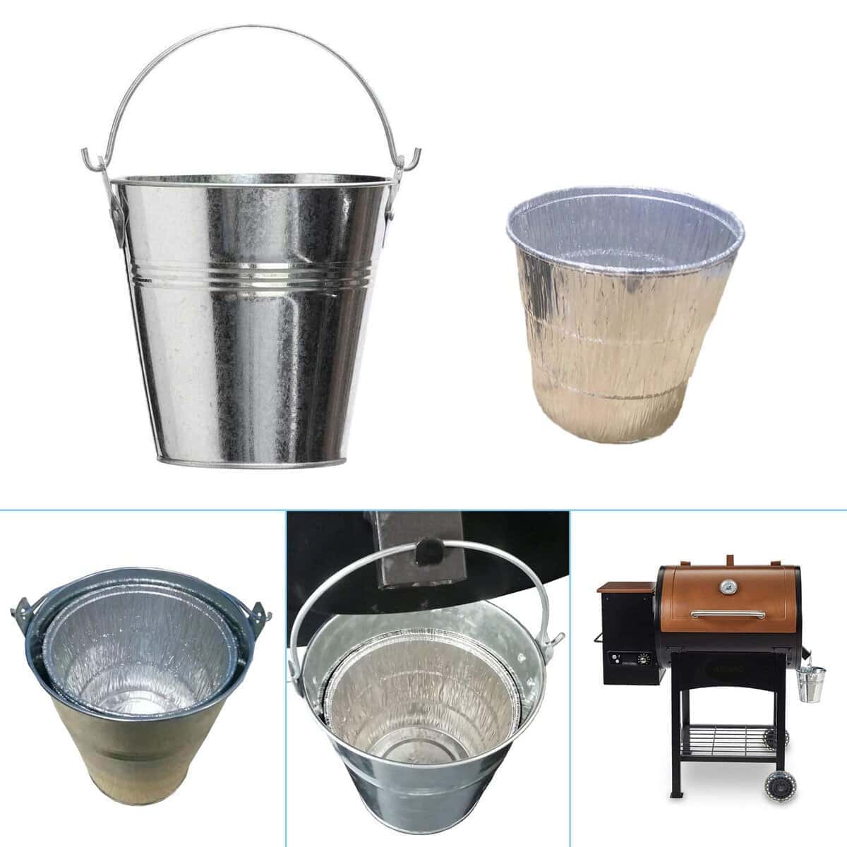 Cubo de Grasa para Grill de Pellets Reliable1st y 10 Pack de Forros de Cubo de Aluminio Desechables y 30 Pack de Guantes Desechables y 10 Pack de Mandiles para Trager, Pit Boss, Green Mountain, etc