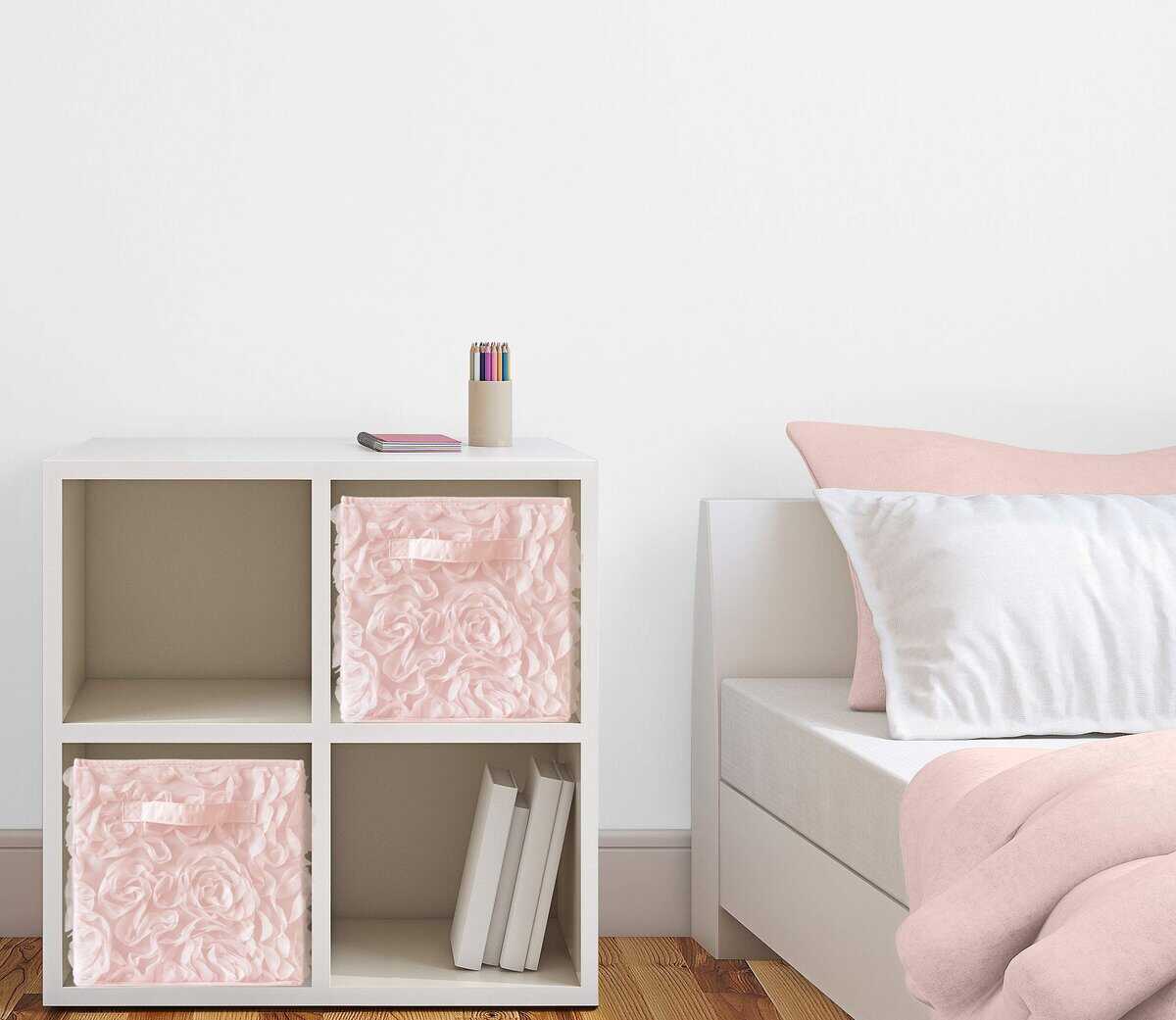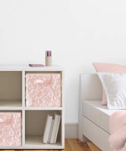 Set de 2 cubos de almacenamiento con diseño floral de rosa de gasa rosa claro y blanco. Cada cubo mide 11 pulgadas de ancho, 10.5 pulgadas de alto y 10.5 pulgadas de profundidad. Diseño elegante y vintage que añade un toque de glamour y lujo a la habitación de tus hijos. Las asas de tela reforzadas permiten una fácil manipulación de los cubos. Ideal para organizar juguetes, ropa y otros accesorios de los niños. Complementa este producto con la ropa de cama y accesorios de decoración de Sweet Jojo Designs en este exclusivo tema.