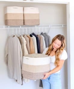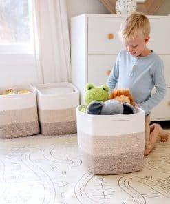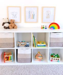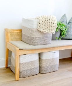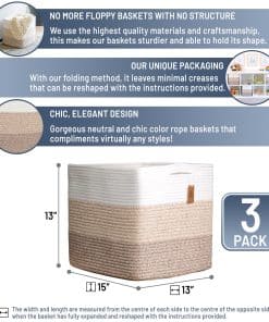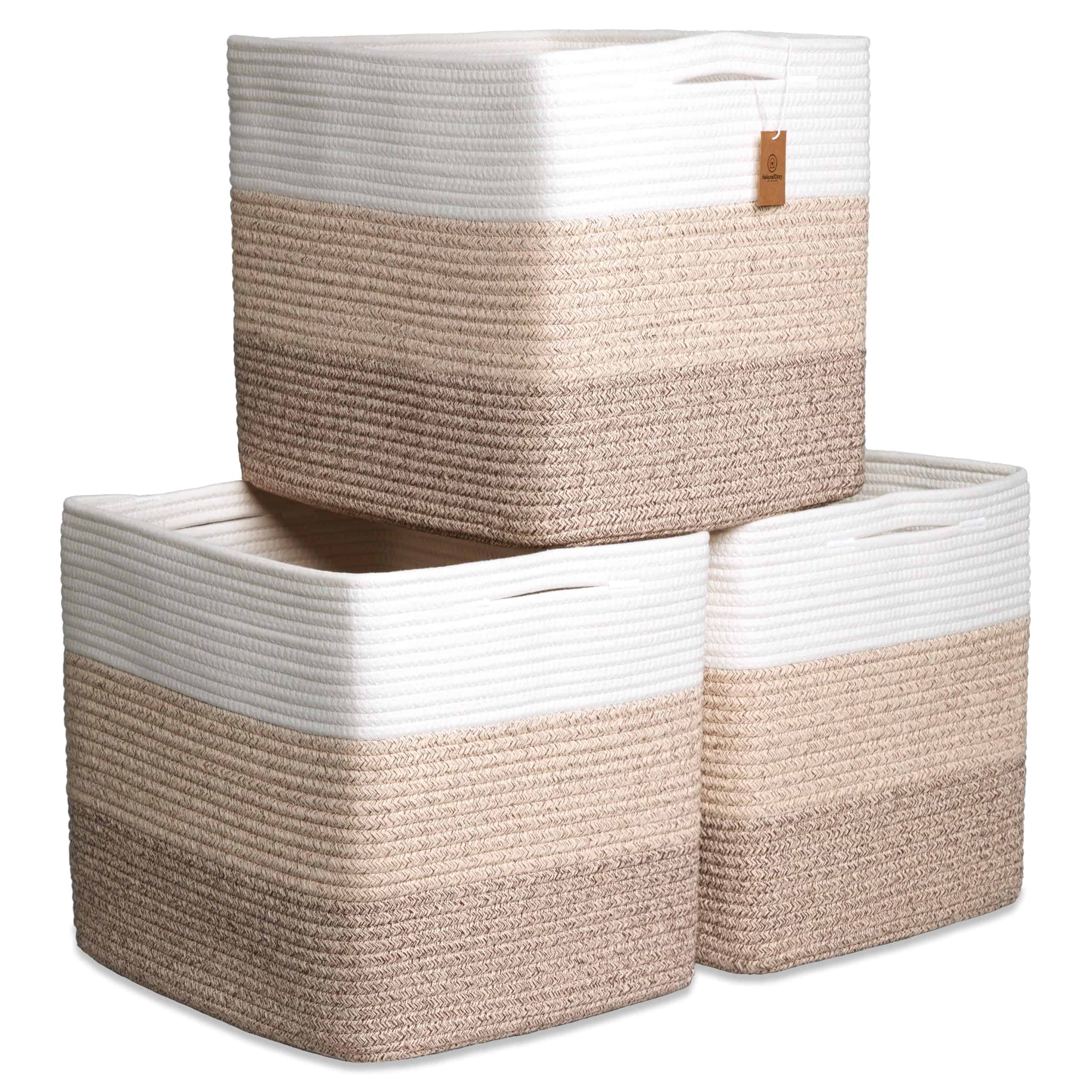 Cubos de almacenamiento Kallax de 13x15x13 NaturalCozy, paquete de 3: Organice su espacio de almacenamiento de manera elegante con nuestro juego de cestas de almacenamiento de alta calidad. Hechas de cuerda de algodón tejida natural, estas cestas son duraderas y seguras para guardar juguetes, libros, mantas y más, manteniendo su hogar ordenado y estilizado. Diseñadas específicamente para los estantes de cubo Kallax, estas cestas maximizan el espacio en cada cubo y ofrecen un 15% más de capacidad en comparación con los cubos estándar de 13x13x13. Con asas ocultas reforzadas para facilitar el transporte y un empaque listo para regalo, estas cestas son la solución perfecta para la organización de su hogar.