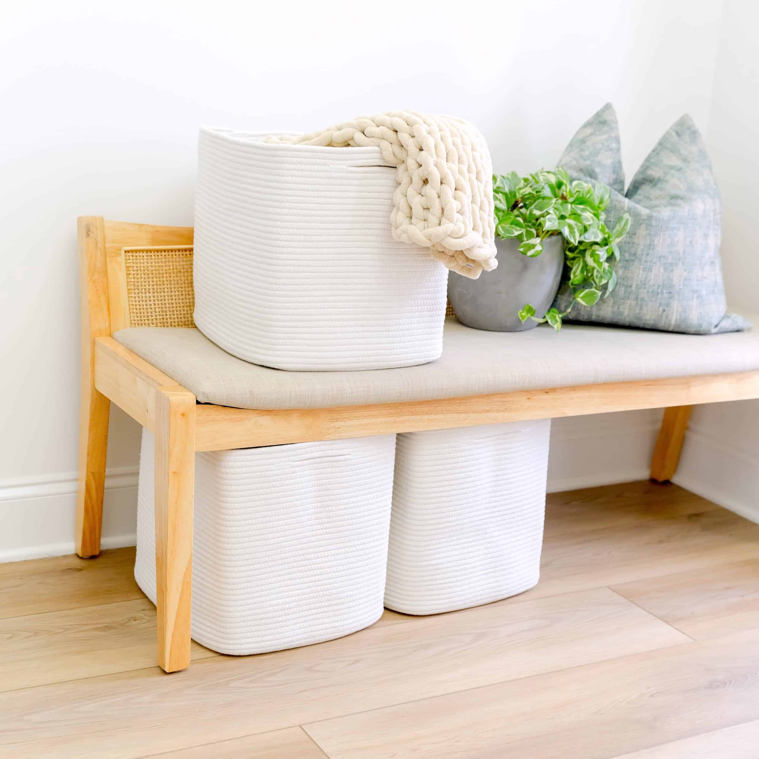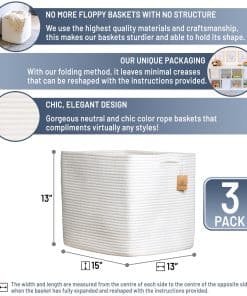 1. ¡Adiós a las cestas tejidas arrugadas! Prepárate para quedarte sorprendido (y luego organizado de forma ordenada) cuando eches un vistazo a nuestro juego de cestas de cuerda tejida. Aquí no hay más cestas de almacenamiento permanentemente arrugadas y caídas. Gracias a nuestro método de plegado único y a la cuerda de calidad, darles forma es fácil con las instrucciones proporcionadas!.