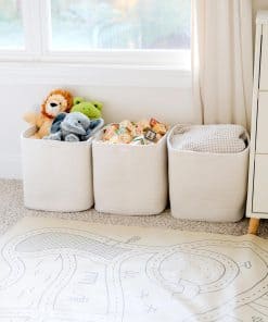 3. Cesta de Almacenamiento de Algodón Natural y Segura: Fabricada con el material de más alta calidad en el mercado, nuestras cestas para juguetes son muy resistentes y están listas para enfrentarse a los pequeños seres humanos con un gusto por mordisquear. Son 100% seguras, así que puedes estar tranquilo si los niños que están en la etapa de dentición le dan un mordisco.