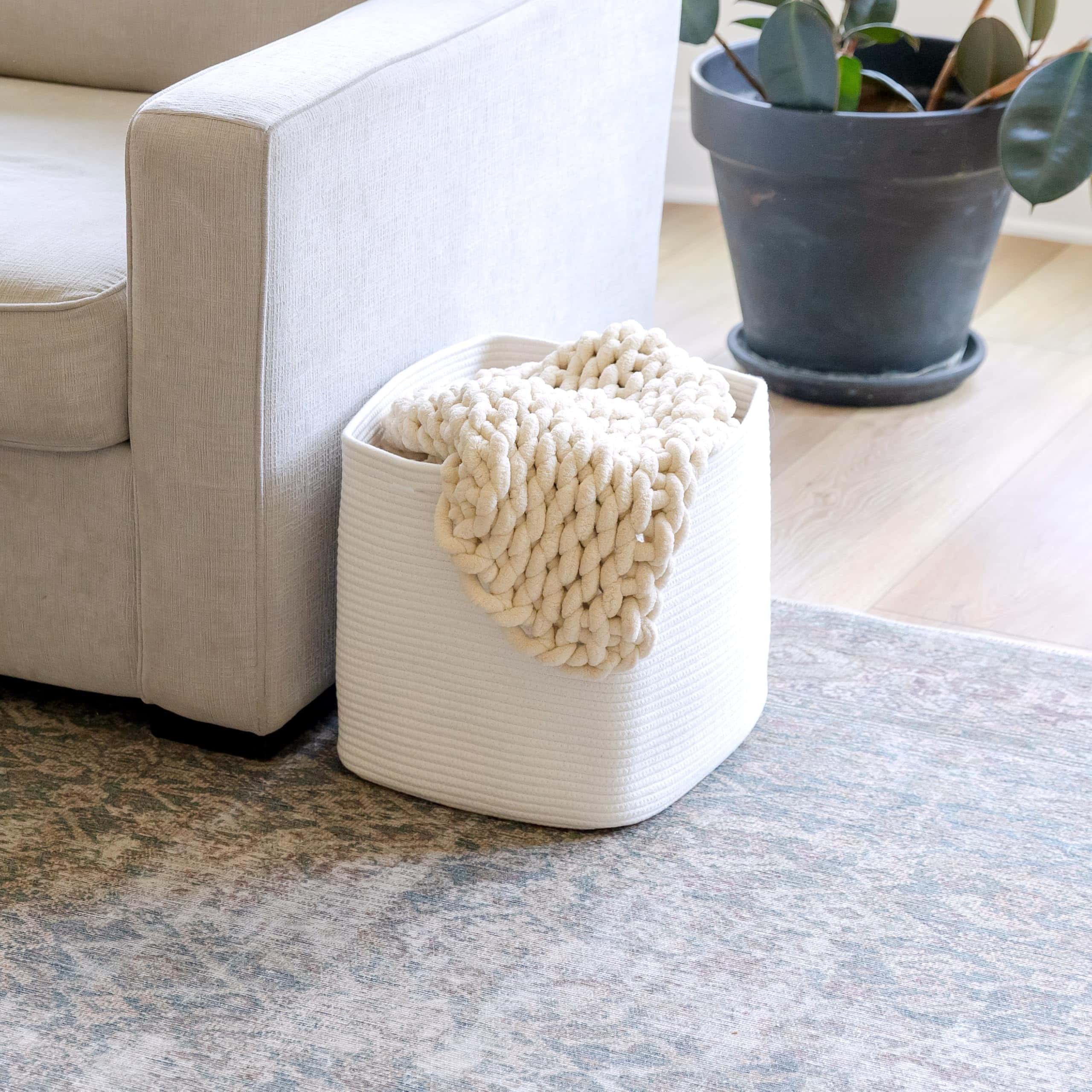 4. Mangos Ocultos Reforzados: ¡Ahora los ves, ahora no! Con mangos completamente ocultos que se integran perfectamente en la cesta de cuerda, serás el Houdini de la organización del hogar. ¡Incluso están doblemente cosidos y reforzados para cargas extra pesadas!.