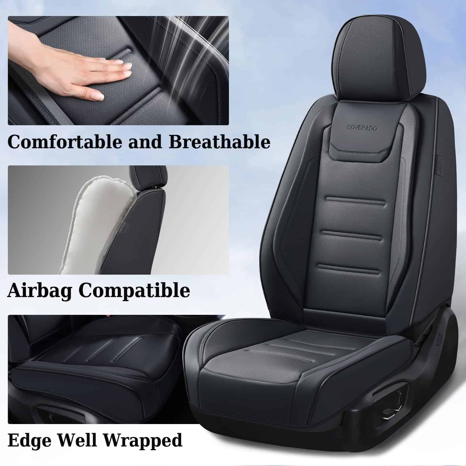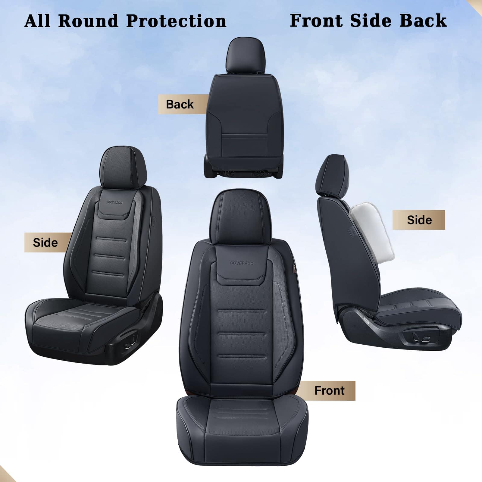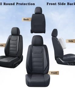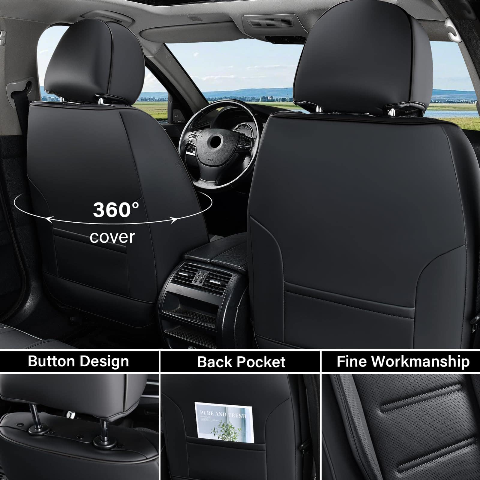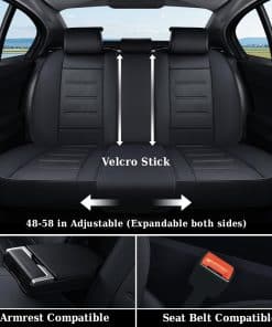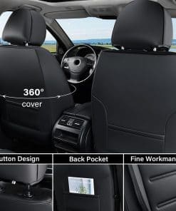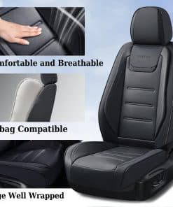 1. DISEÑO DE LUJO: El protector de asiento de coche está diseñado con modelado en 3D, las fundas de asiento son elegantes y modernas, agregando un toque de moda y lujo a la tapicería de su coche. Con cuero NAPPA de alta calidad, las fundas mejorarán su sentido del tacto. 2. AJUSTE UNIVERSAL: Juego completo de fundas para asientos de coche. Cada paquete viene con 2 fundas para asientos delanteros y 3 fundas para asientos traseros, que son compatibles con la mayoría de los coches, SUV, camiones y pick-ups. Ingrese su modelo en la página del producto para verificar si se ajusta. Consejos: por favor, mida el tamaño de su asiento antes de comprar para evitar incompatibilidades. 3. PROTECCIÓN SUPERIOR: El cubre asientos para autos está fabricado con cuero premium, las fundas de asiento pueden agregar gran comodidad mientras protege sus asientos de derrames, manchas, pelos de mascotas y dañinos rayos UV. Son resistentes a la decoloración, suaves al tacto, impermeables, transpirables y hechas para durar. 4. MANTENIMIENTO DE FUNCIONALIDAD: Las fundas de asiento impermeables están diseñadas alrededor del coche, manteniendo la funcionalidad completa y el control del asiento, como el airbag, cinturones de seguridad, apoyabrazos y ajustes del asiento. Las fundas de reposacabezas separadas permiten un fácil ajuste del reposacabezas para una comodidad y seguridad óptimas. 5. INSTALACIÓN FÁCIL: Con gancho y lazo, puedes fijar fácilmente la funda del asiento. Puedes consultar el video de instalación o las instrucciones dentro del paquete para instalar. Instale una vez y disfrute de la protección de la funda del asiento durante mucho tiempo.