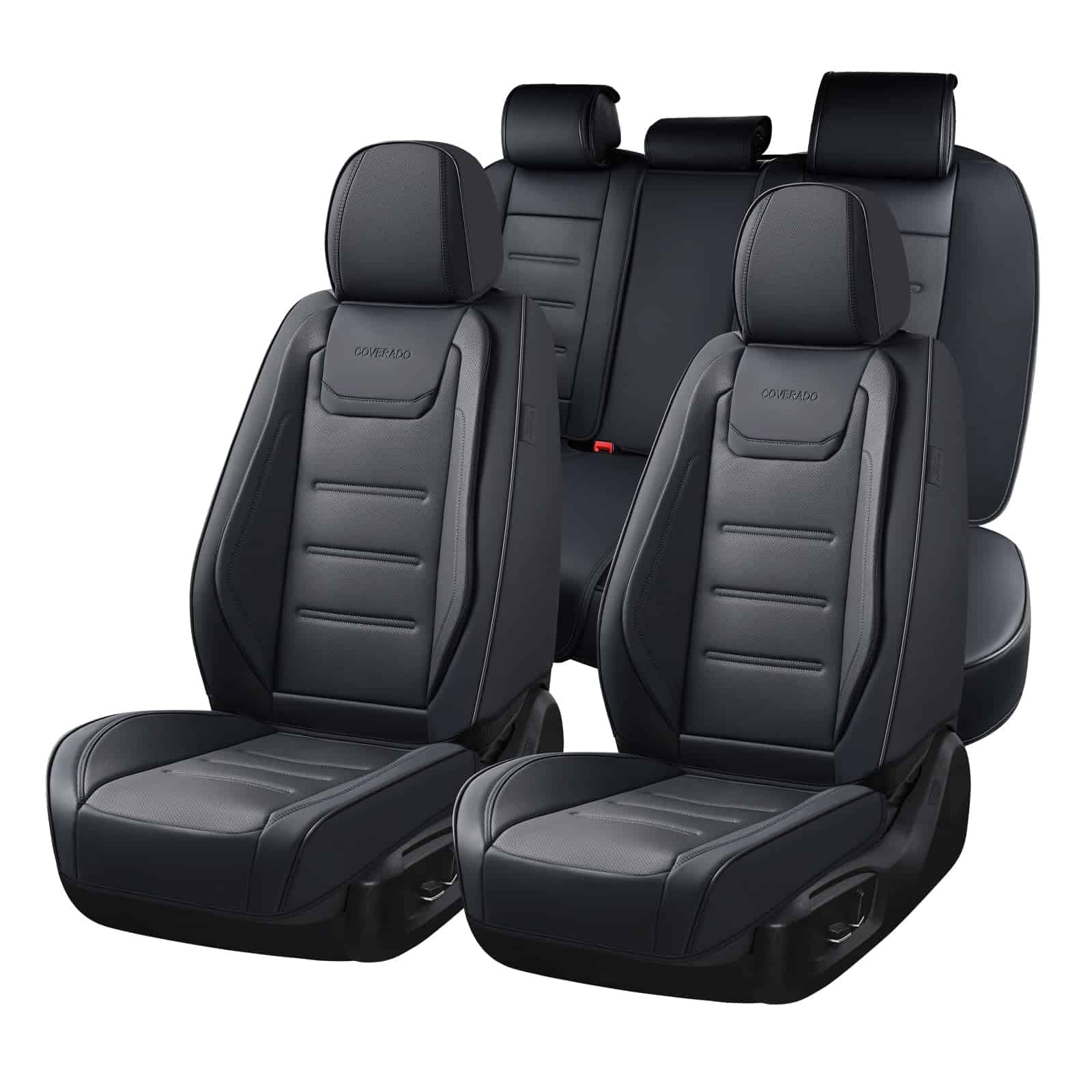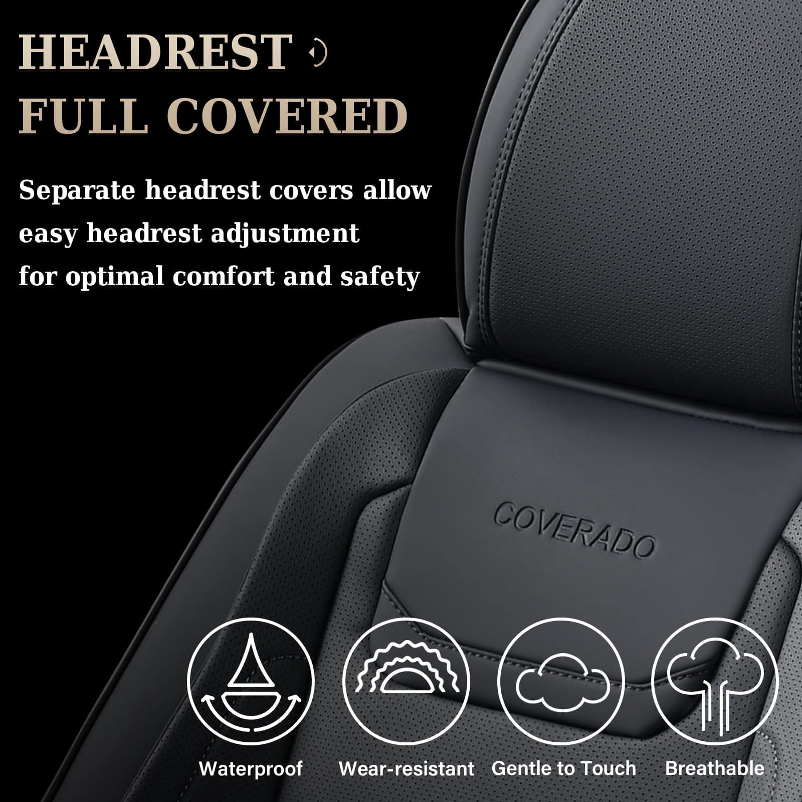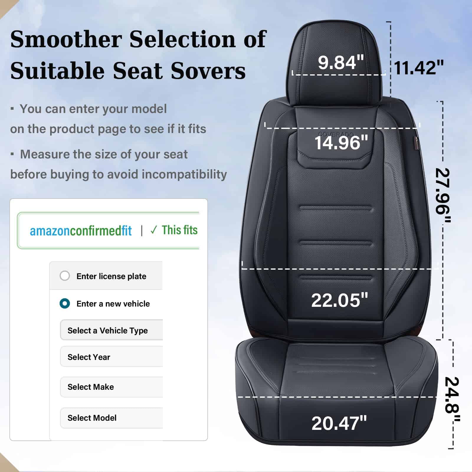 1. DISEÑO DE LUJO: El protector de asiento de coche está diseñado con modelado en 3D, las fundas de asiento son elegantes y modernas, agregando un toque de moda y lujo a la tapicería de su coche. Con cuero NAPPA de alta calidad, las fundas mejorarán su sentido del tacto. 2. AJUSTE UNIVERSAL: Juego completo de fundas para asientos de coche. Cada paquete viene con 2 fundas para asientos delanteros y 3 fundas para asientos traseros, que son compatibles con la mayoría de los coches, SUV, camiones y pick-ups. Ingrese su modelo en la página del producto para verificar si se ajusta. Consejos: por favor, mida el tamaño de su asiento antes de comprar para evitar incompatibilidades. 3. PROTECCIÓN SUPERIOR: El cubre asientos para autos está fabricado con cuero premium, las fundas de asiento pueden agregar gran comodidad mientras protege sus asientos de derrames, manchas, pelos de mascotas y dañinos rayos UV. Son resistentes a la decoloración, suaves al tacto, impermeables, transpirables y hechas para durar. 4. MANTENIMIENTO DE FUNCIONALIDAD: Las fundas de asiento impermeables están diseñadas alrededor del coche, manteniendo la funcionalidad completa y el control del asiento, como el airbag, cinturones de seguridad, apoyabrazos y ajustes del asiento. Las fundas de reposacabezas separadas permiten un fácil ajuste del reposacabezas para una comodidad y seguridad óptimas. 5. INSTALACIÓN FÁCIL: Con gancho y lazo, puedes fijar fácilmente la funda del asiento. Puedes consultar el video de instalación o las instrucciones dentro del paquete para instalar. Instale una vez y disfrute de la protección de la funda del asiento durante mucho tiempo.