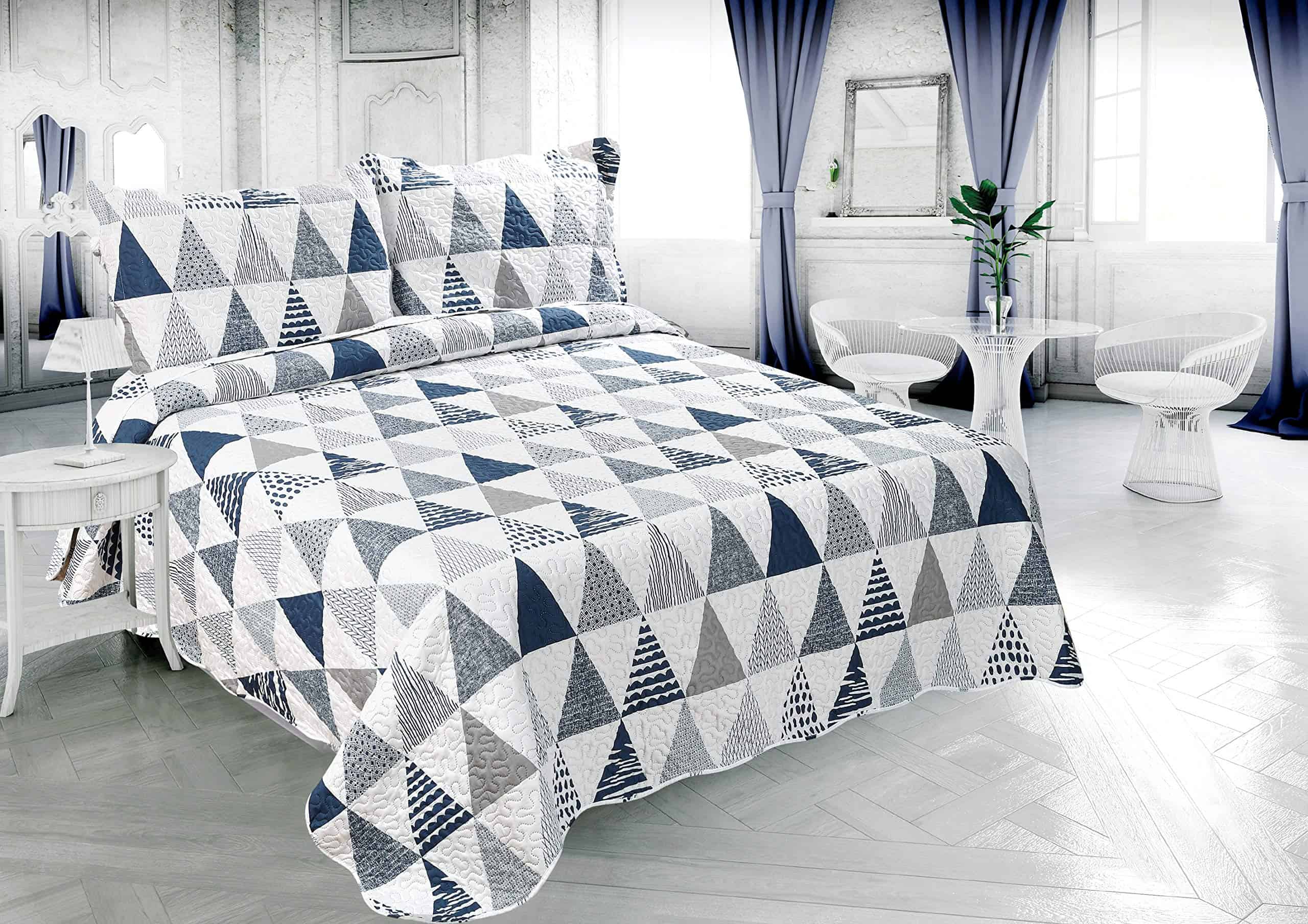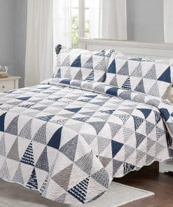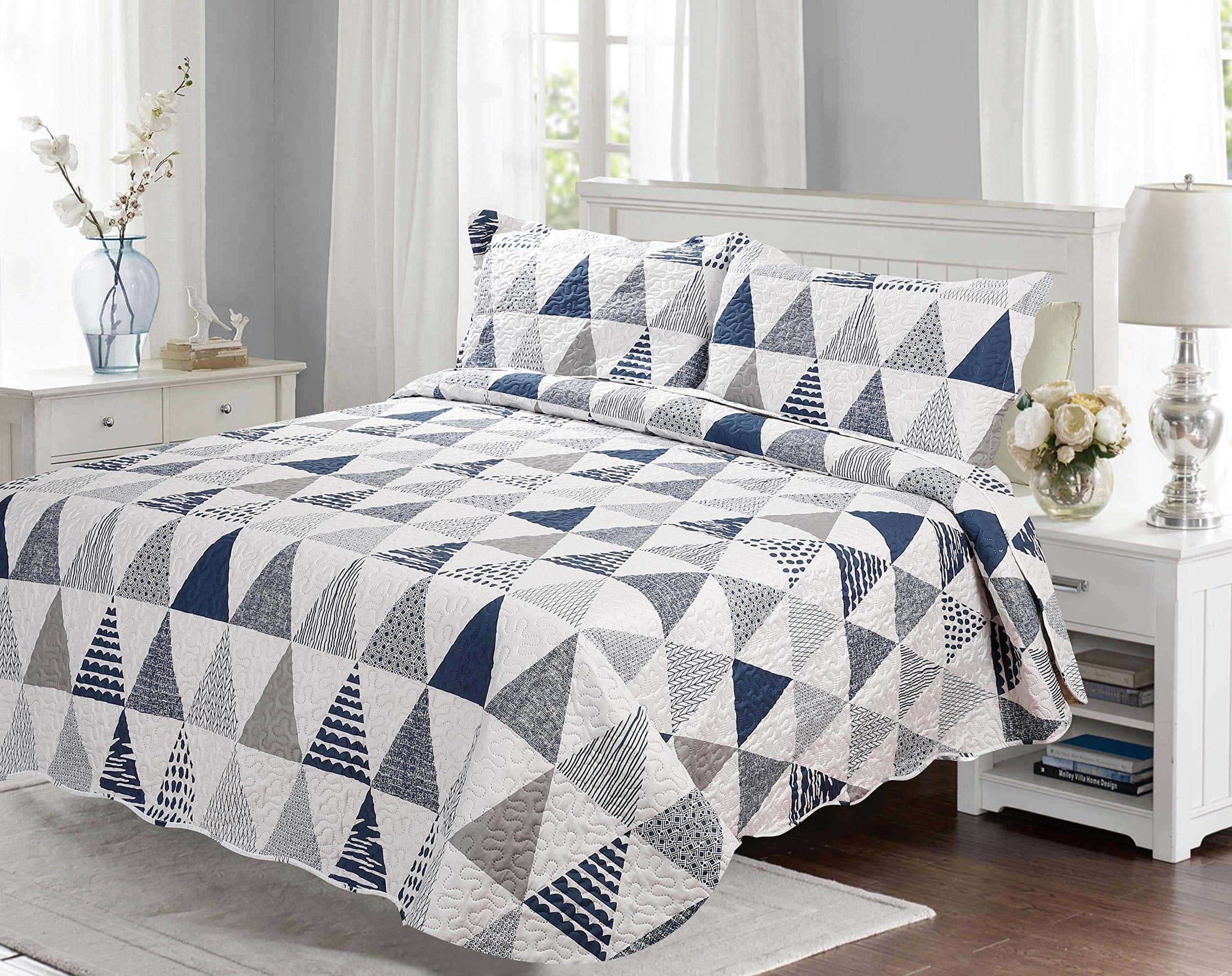 Este juego Tamaño Queen/Completo incluye 1 colcha – 92 x 94 pulgadas y 2 fundas de almohada – 20 x 30 + 2 pulgadas. Si desea cubrir las sábanas o la cama con la colcha, elija un tamaño más grande del juego de colchas. Adecuado para noches calurosas de verano, también se puede utilizar como sábana o manta en invierno, la colcha ligera es muy fácil de mover su cuerpo libremente al dormir. Material de contenido – 100% microfibra cepillada, relleno 100% poliéster. Esta colcha está diseñada para uso en todas las estaciones, puede mantenerte abrigado y cómodo, pero no demasiado caliente. Característica – Duradero, sin formación de bolitas, súper suave, sin arrugas, prelavado, preencogido, resistente a la decoloración, tacto 100% algodón. Hermosamente empaquetado en una bolsa con cremallera. Instrucciones de cuidado fáciles – Lavable a máquina con agua fría en ciclo suave. Lavar blancos y colores por separado. No usar lejía en colores. Secar a baja temperatura.