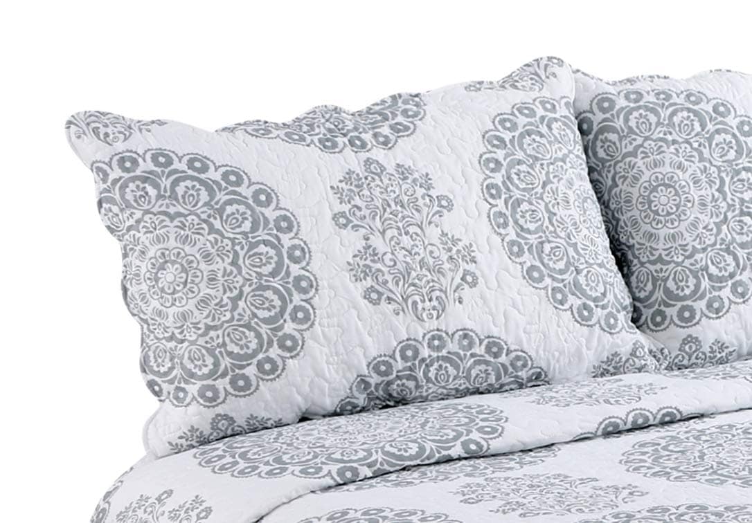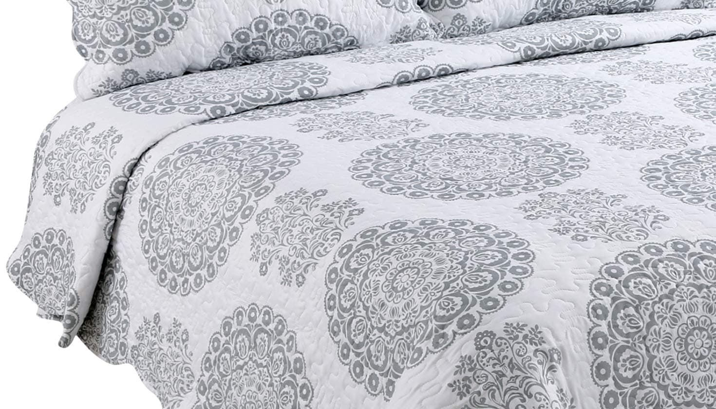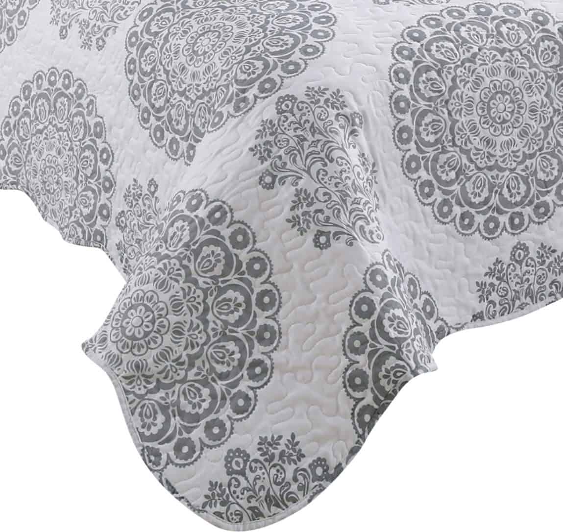 1. Diseño Moderno Impreso: Este conjunto único de cubrecamas impresas es perfecto para la decoración del hogar. Consta de círculos geométricos florales grises con base de color blanco. Ropa de cama elegante, transpirable y reversible de lujo ligera. Elección perfecta para propietarios con gustos sofisticados en decoración. 2. Dimensión: Este tamaño Queen Full incluye 1 cubrecama – 92 x 94 pulgadas y 2 fundas de almohada – 20 x 30 + 2 pulgadas. Si desea que la cubrecama cubra las sábanas o la cama, elija un tamaño más grande del conjunto de cubrecama. Adecuado para noches calurosas de verano, también se puede usar como sábana o manta en invierno, las cubrecamas ligeras son muy fáciles de mover el cuerpo libremente al dormir. 3. Material del contenido – 100% microfibra cepillada, rellena con 100% poliéster. Esta cubrecama está diseñada para uso durante todo el año, puede mantenerlo cálido y cómodo, pero no demasiado caliente. 4. Característica – Duradero, sin bolitas, súper suave, sin arrugas, prelavado, preencogido, resistente a la decoloración, tacto 100% algodón. Hermosamente empaquetado en una bolsa con cremallera. 5. Instrucciones de cuidado fáciles – Lavable a máquina con agua fría y ciclo suave. Lavar blancos y colores por separado. No use lejía en colores. Secar a baja temperatura.