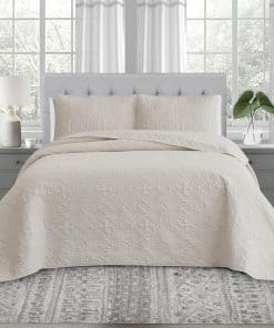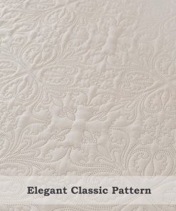 Cubrecama extragrande para cama, esta colcha de alta calidad está hecha de 100% poliéster microfibra, con un elegante relieve sólido y sin sustancias químicas dañinas. El tamaño extragrande llega hasta el suelo, con un hermoso borde que le da un elegante drapeado. El edredón es ligero, suave y transpirable, perfecto para todas las estaciones. Se puede lavar a máquina y soporta lavados repetidos sin perder su suavidad. Añade un toque de elegancia a tu dormitorio con este juego reversible de 3 piezas, ideal para relajarse y disfrutar de un sueño reparador.