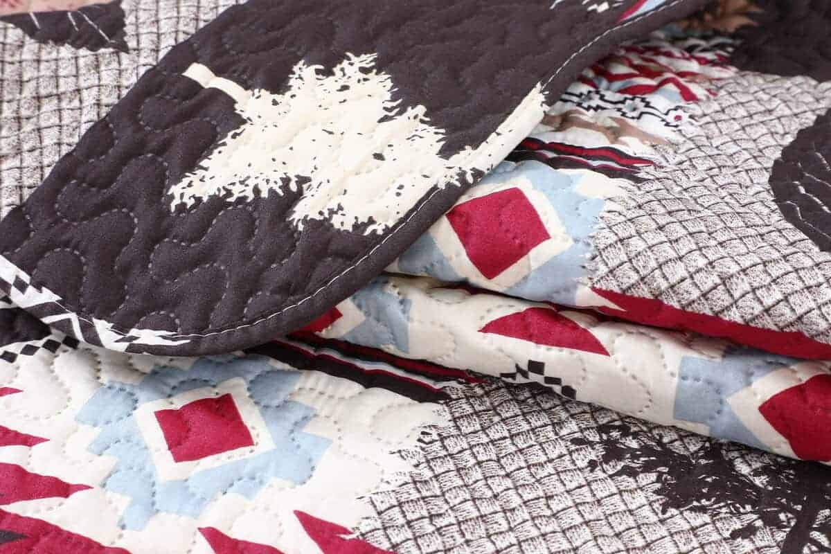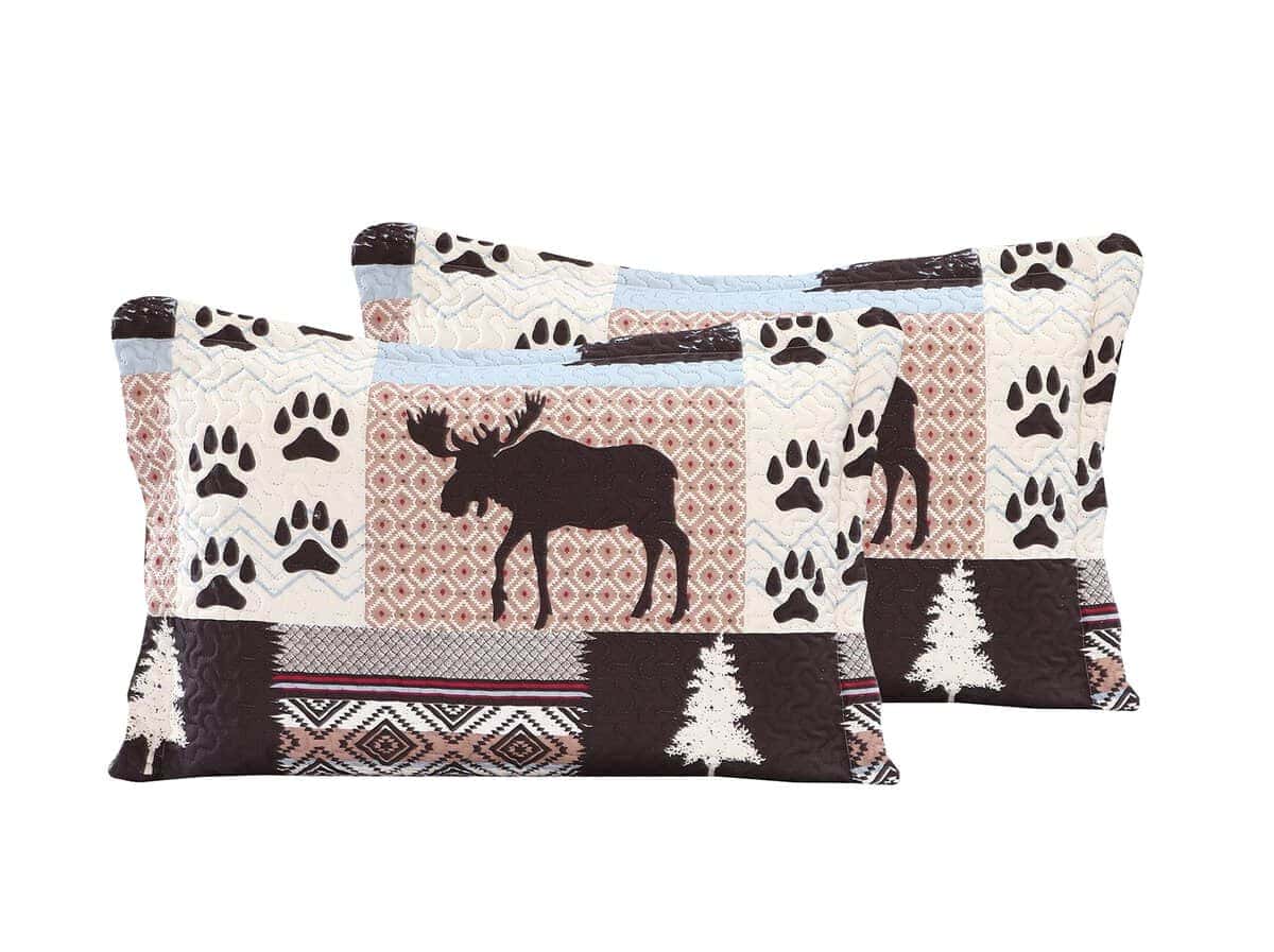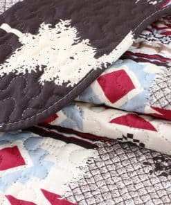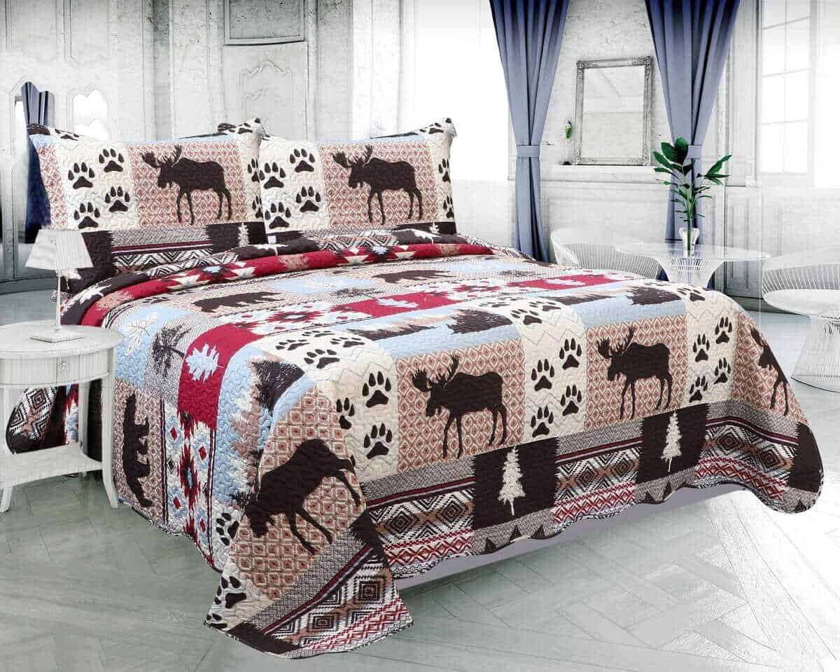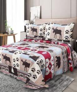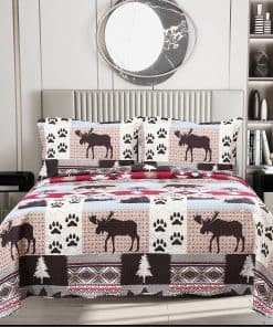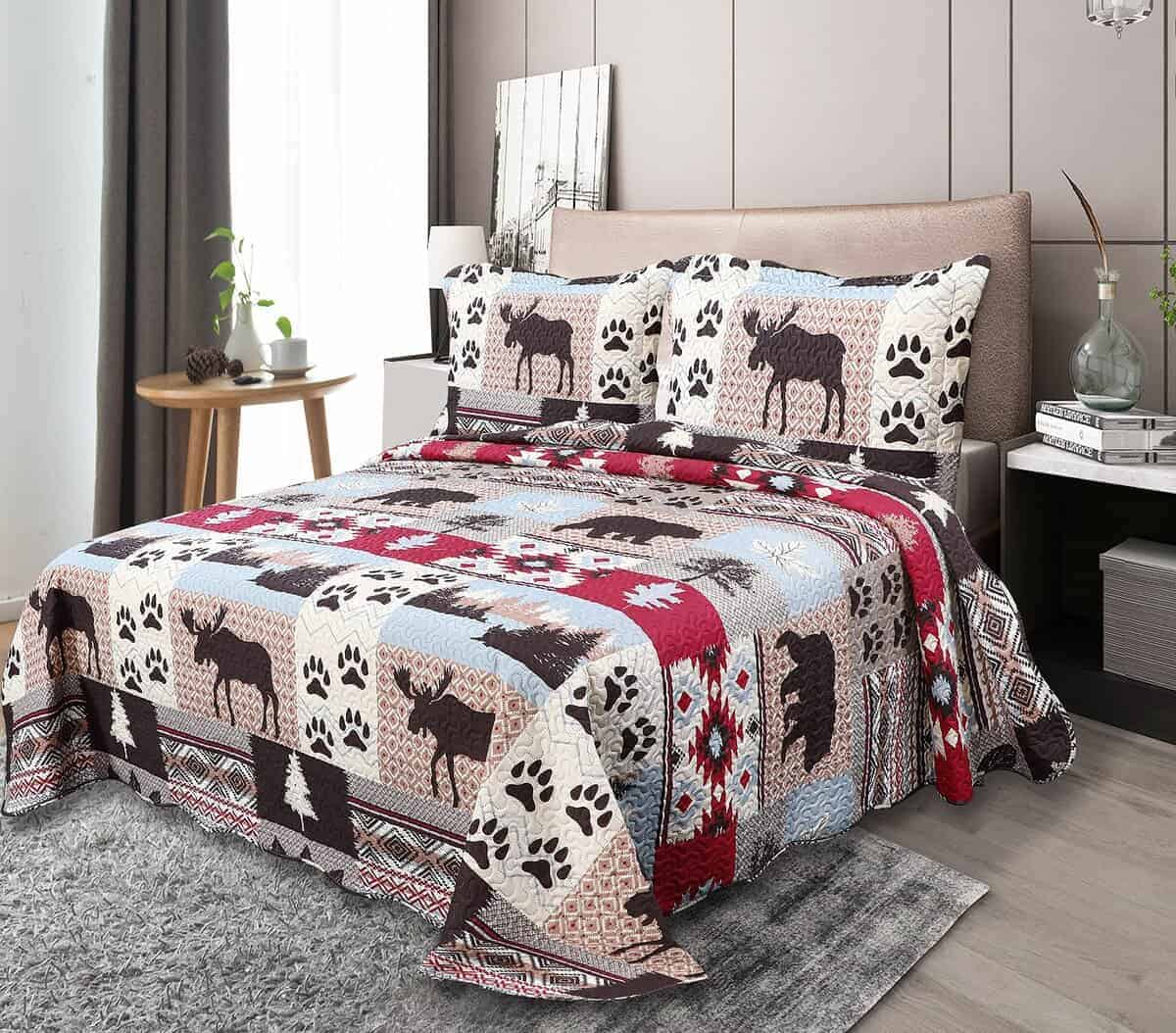 Estilo de estampado moderno: este juego de colchas con estampado único y acolchado en relieve es perfecto para la decoración del hogar. Este moderno patrón de cabaña está compuesto por huellas de oso marrón, árbol, tartán y patrón nativo americano rústico con colores rojo, azul, blanco, crema y marrón. Ropa de cama fina, transpirable, elegante y reversible, juego de cama de lujo ligero perfecto para propietarios con gustos sofisticados en decoración.