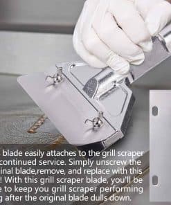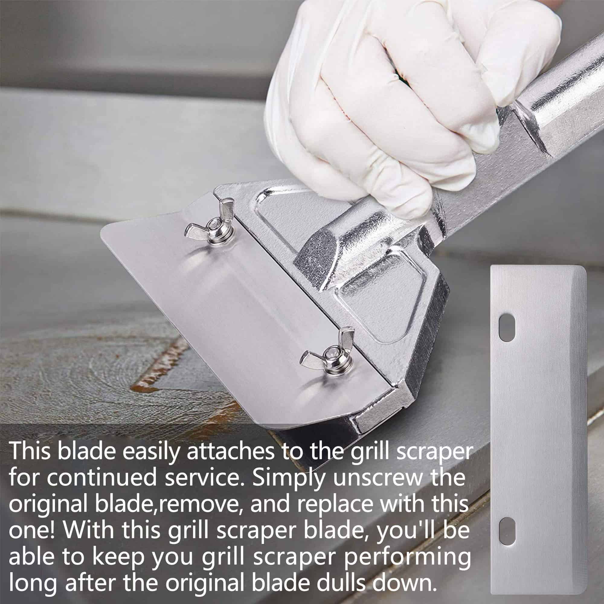 3. FÁCIL DE REEMPLAZAR: Esta cuchilla para rasqueta de parrilla se fija fácilmente al raspador de parrilla para un servicio continuo. Simplemente desenrosque la cuchilla original, retírela y reemplácela con esta ¡Con este accesorio para parrilla plana, podrá mantener su raspador de parrilla funcionando mucho después de que la cuchilla original se vuelva opaca.