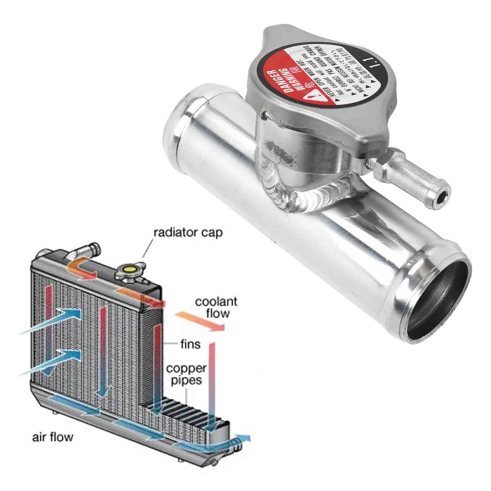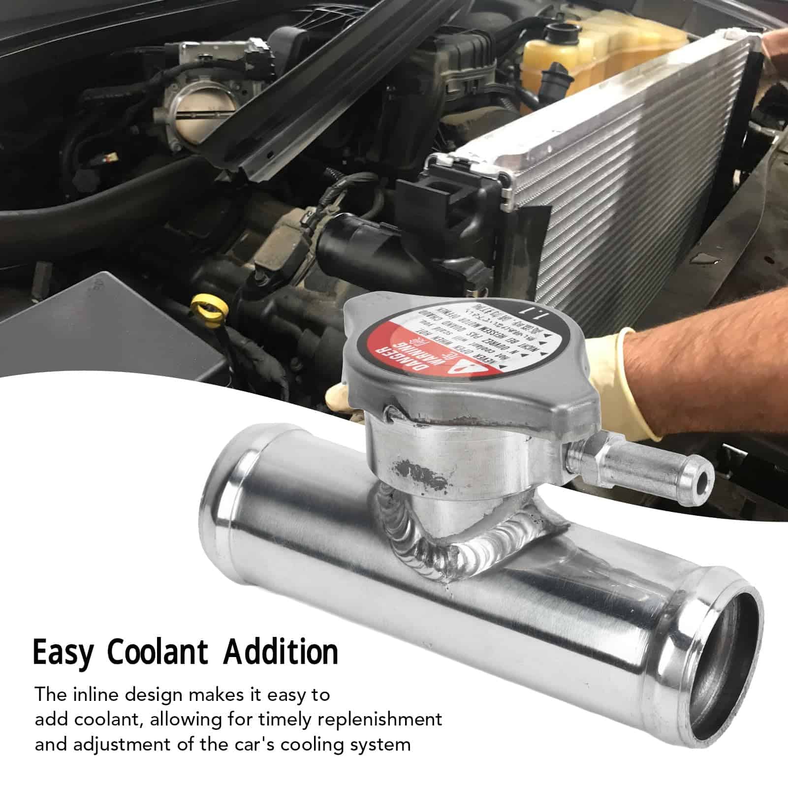 1. Material de Aluminio: El cuello de llenado de manguera de radiador en línea está hecho de aluminio T 6061, que garantiza durabilidad y longevidad. El pulido asegura. La presión incluida de 16PSI proporciona la regulación de presión necesaria.
