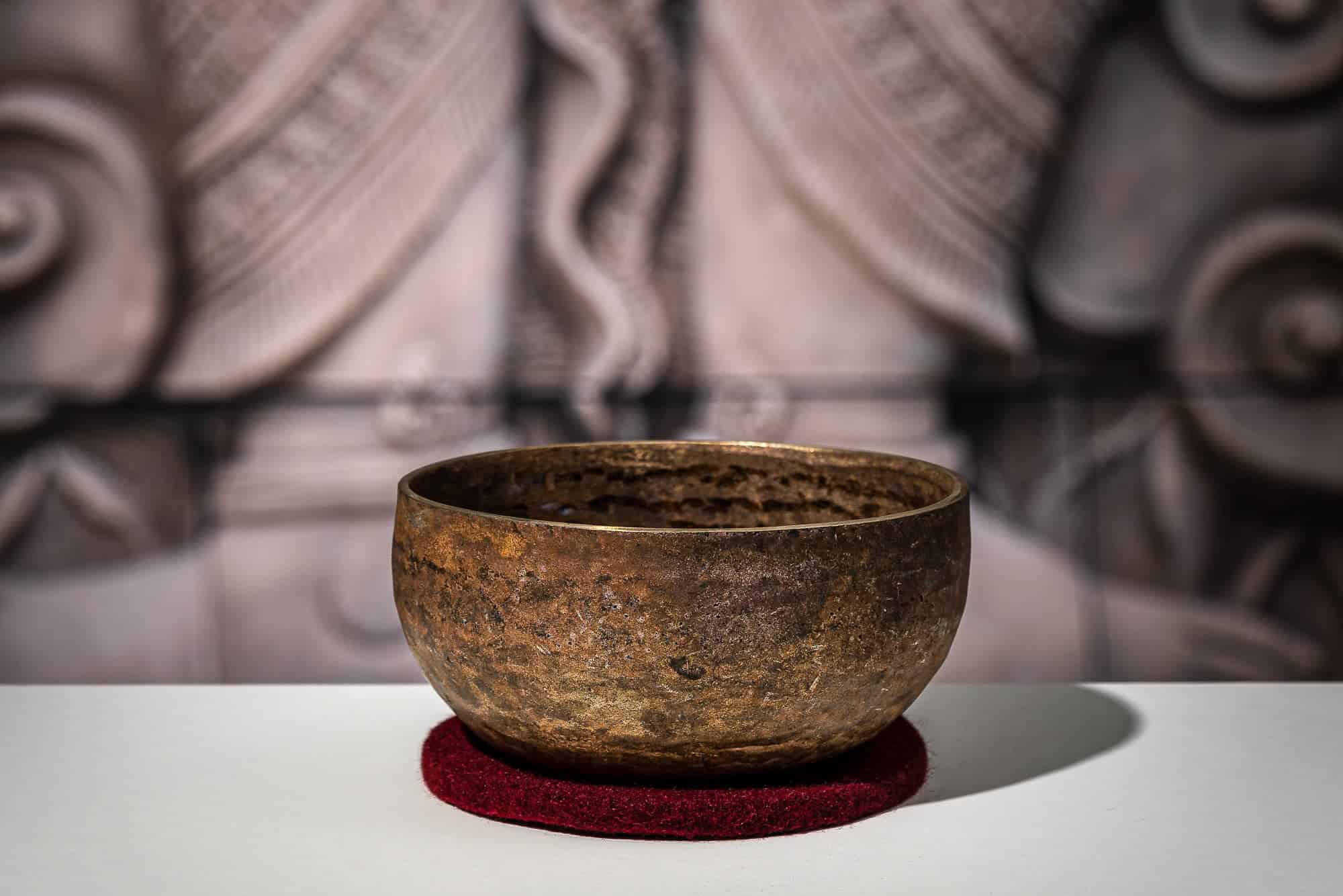 Cuenco de Canto de Bronce con Anillo de Fieltro y Cubierta,