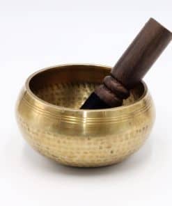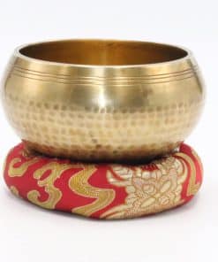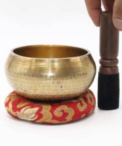 El cuenco tibetano es una campana vibrante que produce un tono rico y profundo, utilizado para terapia de sonido y curación espiritual. Tradicionalmente hecho de siete metales correspondientes a los siete planetas visibles, el cuenco tibetano promueve un masaje sonoro profundo y mejora el estado de relajación. Frotar un cuenco tibetano lo hace cantar, de ahí que obtenga su nombre. La ciencia detrás del proceso implica que un tono se realza y todos los demás desaparecen, creando un sonido puro y penetrante. El mazo de madera que viene con el cuenco, al frotar el borde, creará el zumbido. Presiona firmemente el palo de madera contra el borde del cuenco para evitar un sonido de traqueteo. Piensa en ello como montar una ola mientras arrastras lentamente el mazo alrededor del cuenco en círculos. Frotar gradualmente hará que empiece a sonar. A veces un ligero toque para iniciar el sonido, luego comenzar a frotar hará que funcione más fácilmente.