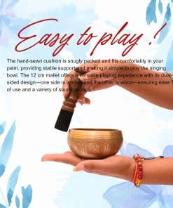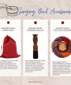 Este Cuenco Tibetano Triskelion es un instrumento de meditación hecho a mano en Nepal con técnicas tradicionales para garantizar una calidad tibetana auténtica y un sonido único. El set completo incluye un cuenco hecho a mano, un suave cojín tibetano, un palo de madera y una práctica bolsa de transporte para facilitar su traslado y almacenamiento. Ideal para prácticas de yoga, sanación de chakras, meditación de mindfulness y alivio del estrés, este cuenco ofrece una experiencia auditiva profunda que te ayuda a enfocar la mente y alcanzar la paz interior. Además, es un regalo espiritual perfecto tanto para hombres como para mujeres, fomentando la relajación y promoviendo la armonía interior. Con un diámetro de 10 cm, una altura de 6 cm y un peso de 250 gramos, este cuenco compacto es de tamaño ideal para su uso y portabilidad, encajando cómodamente en tus manos o en un cojín de meditación. Su diseño intrincado presenta grabados del Triskelion, un símbolo de crecimiento espiritual y desarrollo personal, el mantra tibetano «Om Mani Padme Hum» y el Símbolo del Equilibrio, simbolizando armonía en todos los aspectos de la vida.