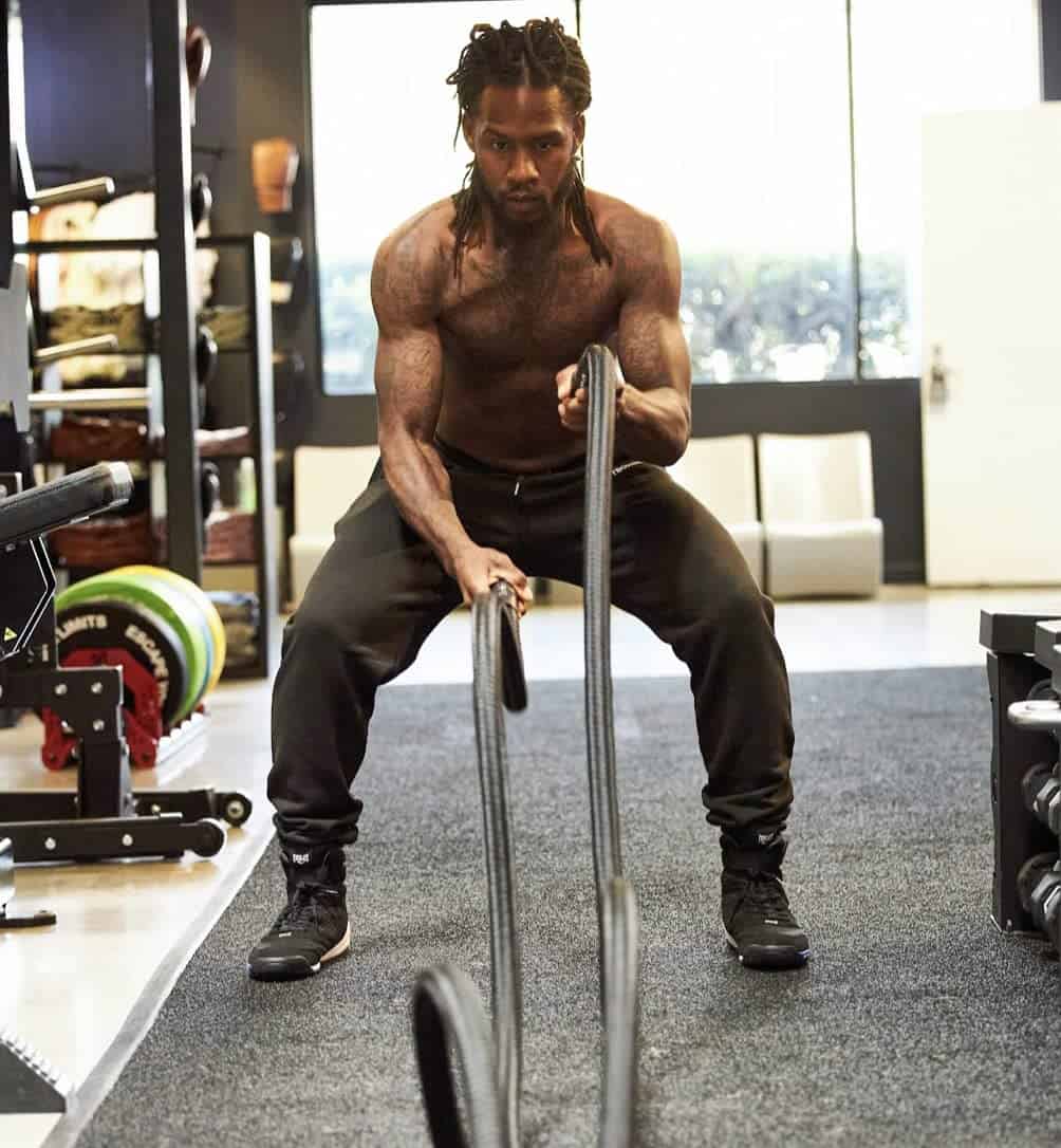 4. GARANTÍA DE DOS AÑOS – mucho más prolongada que las mejores cuerdas de batalla con construcción trenzada 100% poliéster, mango estriado para un mejor agarre fabricado en EE.UU. y Canadá que es portátil, suave en los pisos, más silencioso y limpio. Sin fibras que se desprendan que provienen de cuerdas de acondicionamiento físico baratas de poliéster Dacron para hacer ejercicio.