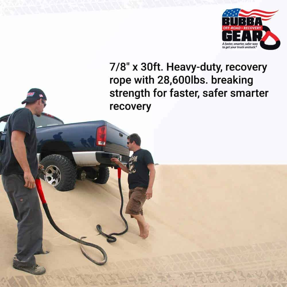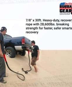 La Cuerda de Recuperación Bubba Rope Power Stretch es el compañero perfecto para cualquier aventura todoterreno. Con un diámetro de 7/8″ y una longitud de 30 pies, esta cuerda de recuperación pesada tiene una impresionante resistencia a la rotura de 28,600 lbs, lo que la convierte en una herramienta indispensable para recuperar vehículos de manera rápida y segura.