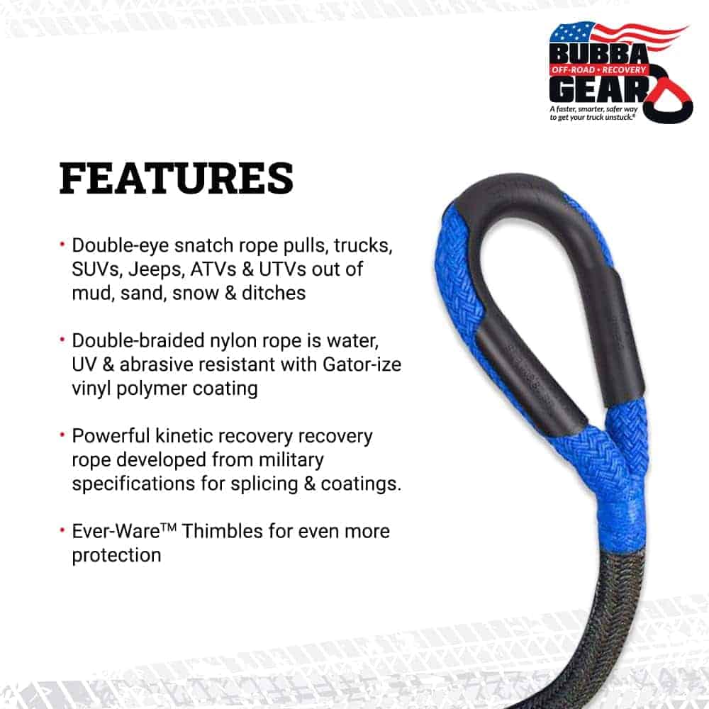 Su diseño con doble ojo permite remolcar una variedad de vehículos, desde camionetas y SUVs hasta Jeeps, ATVs y UTVs, sacándolos fácilmente de situaciones difíciles como barro, arena, nieve y zanjas. La cuerda de nylon de doble trenzado es extremadamente resistente al agua, los rayos UV y la abrasión, y cuenta con un recubrimiento de polímero de vinilo Gator-ize para una durabilidad excepcional.
