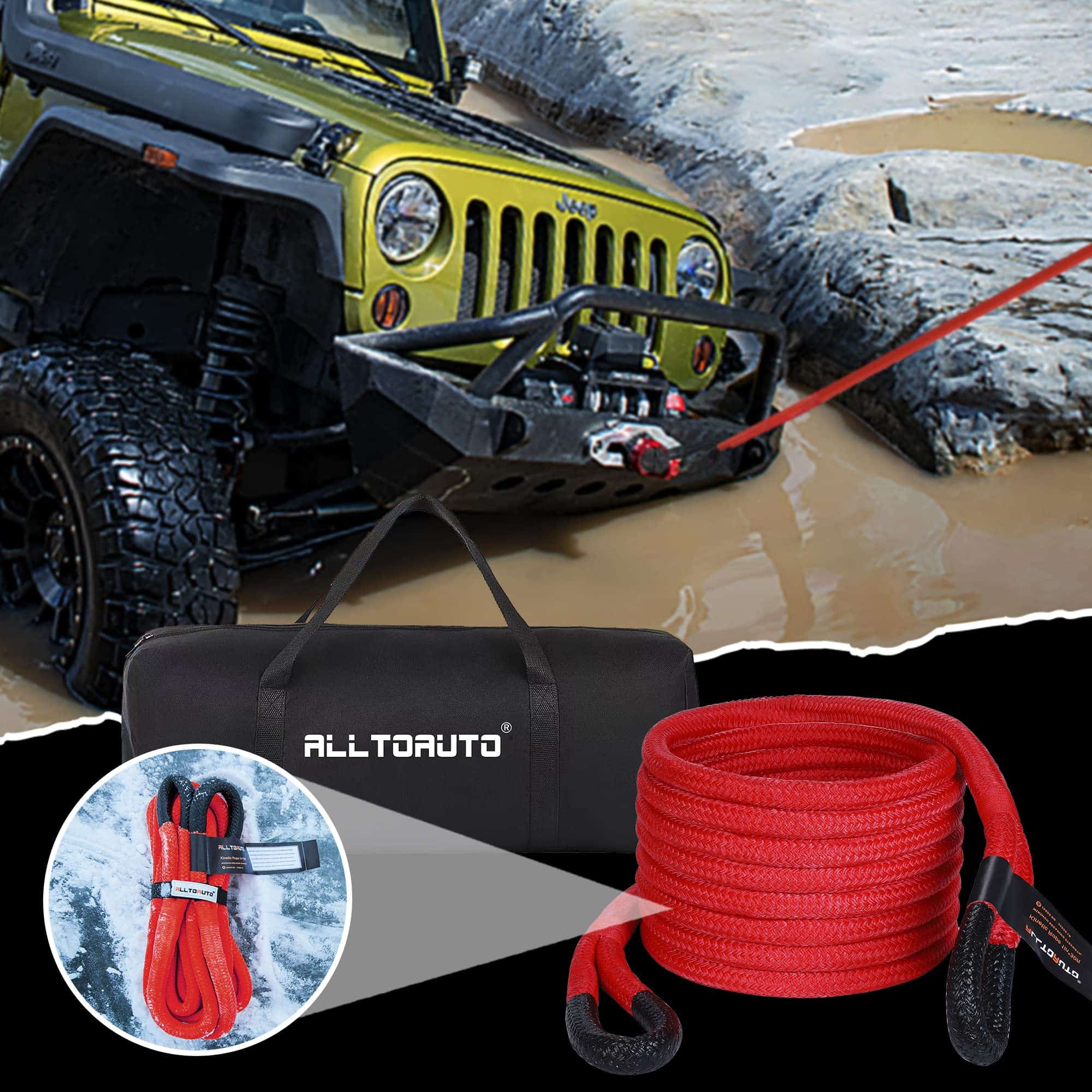 La Cuerda de Recuperación Cinética AlltoAuto de 1″ x 30′ es la herramienta perfecta para ser utilizada en situaciones de remolque difíciles. Diseñada para ser resistente y duradera, esta cuerda cinética tiene una capacidad de estiramiento del 35%, lo que le permite absorber una gran cantidad de energía potencial elástica. Cuando se supera la resistencia del vehículo atascado, la energía potencial elástica se transforma en energía cinética, lo que resulta en una extracción suave y eficiente.