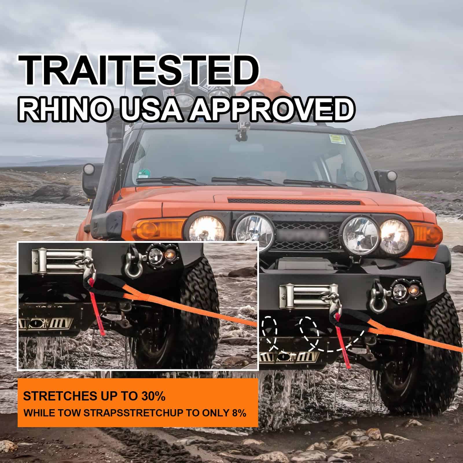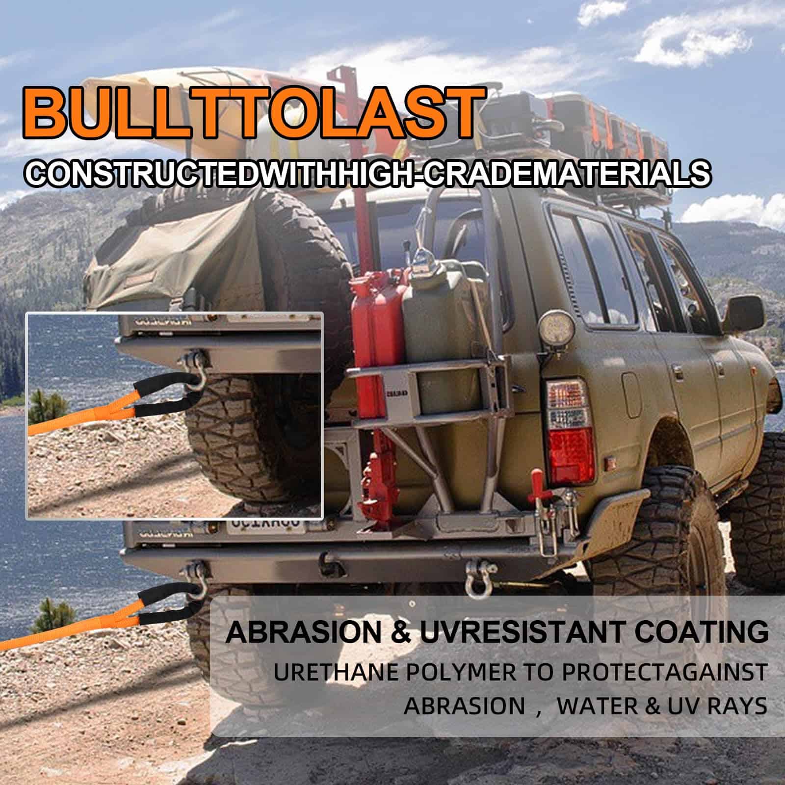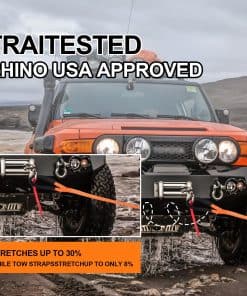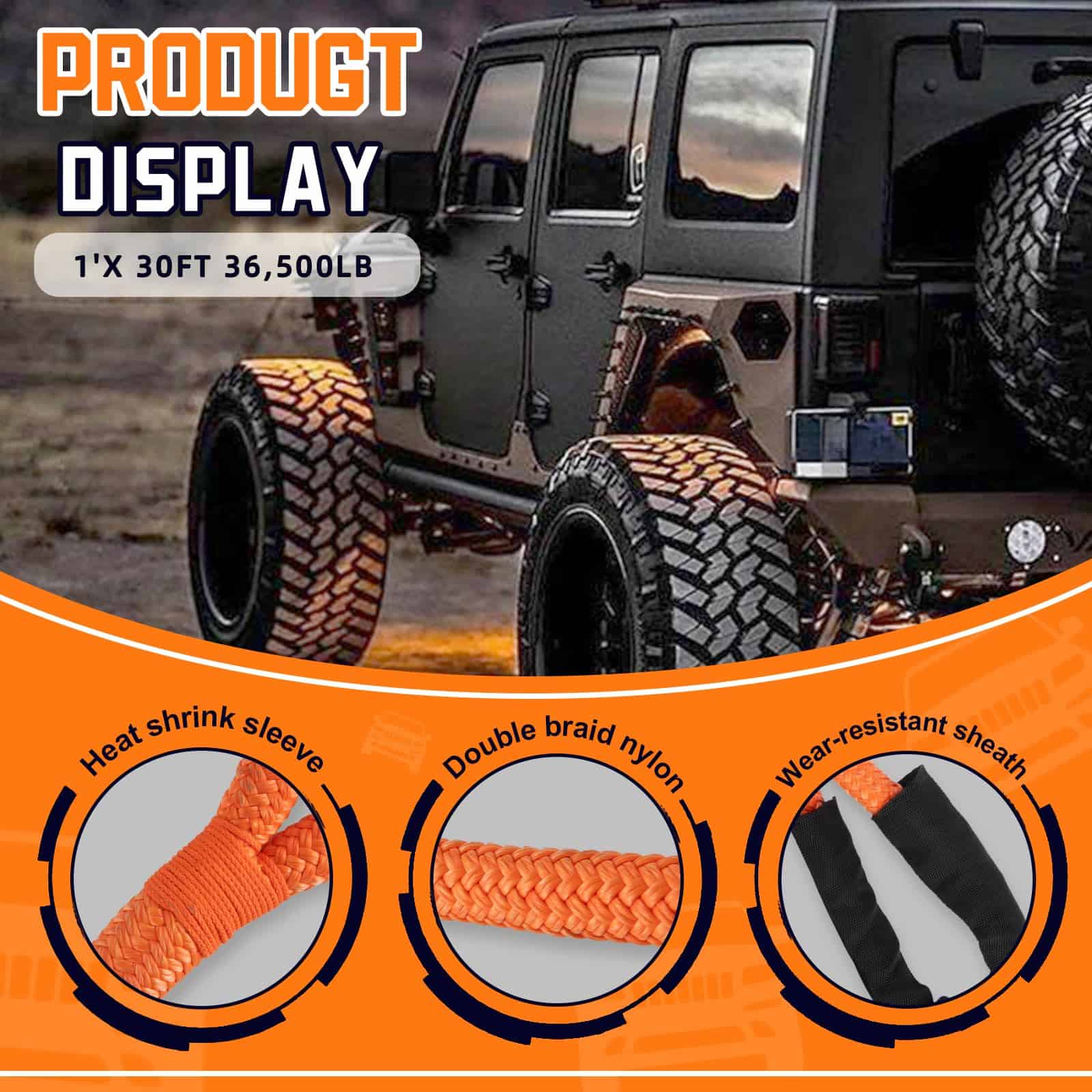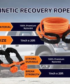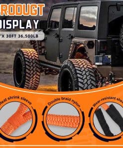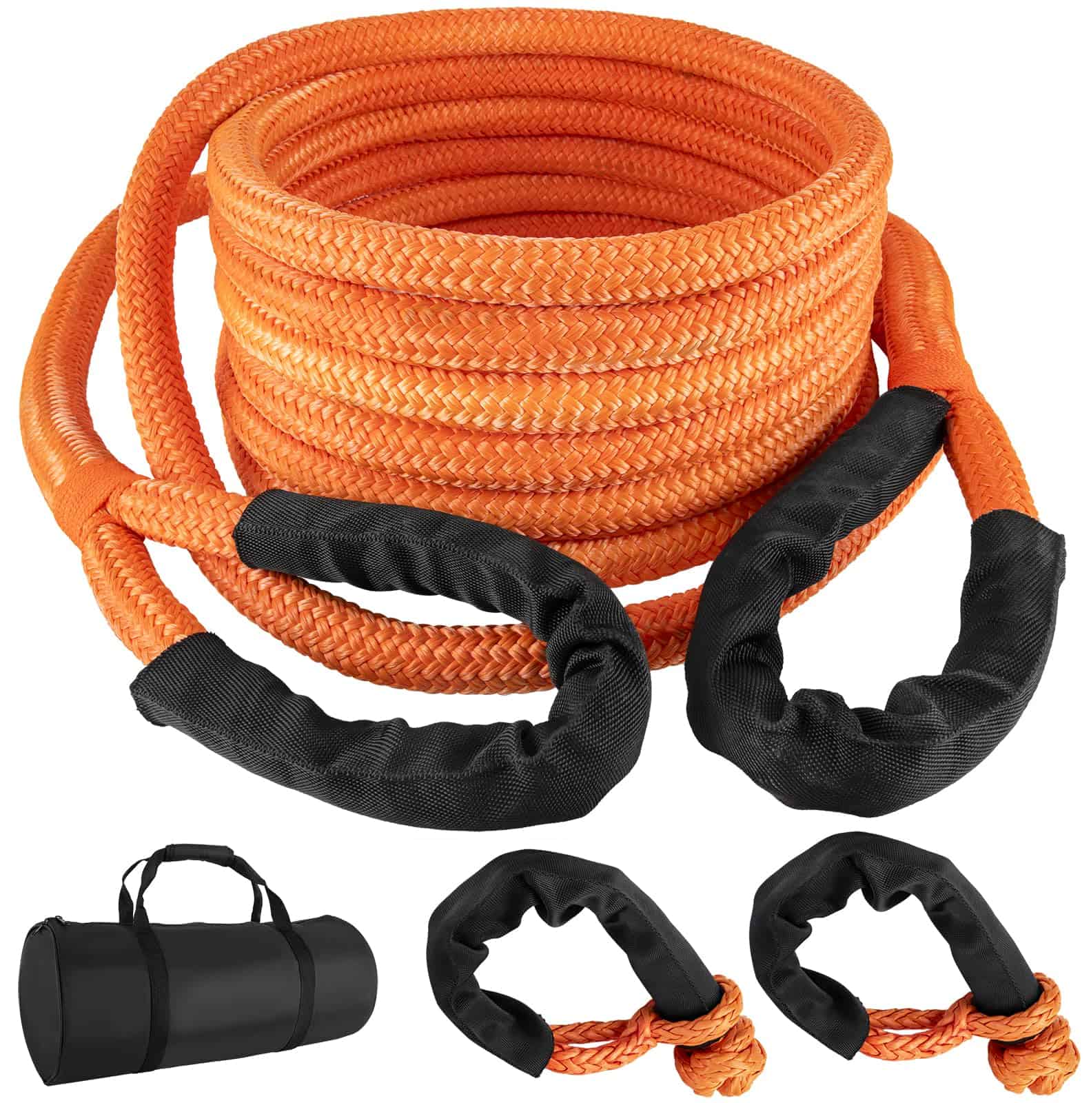 3. Cuerda de Remolque de Alta Resistencia: La resistente cuerda de remolque cinética cuenta con una resistencia a la rotura que supera las 48,000 libras, lo que la hace capaz de recuperar y remolcar ATVs, UTVs, tractores, camiones y más. Esta cuerda de remolque cinética es ideal para camiones, UTVs, ATVs y vehículos 4×4 fuera de carretera. Las propiedades de alta absorción de impactos de la cuerda de remolque cinética mejoran la seguridad de los vehículos durante las operaciones de recuperación.