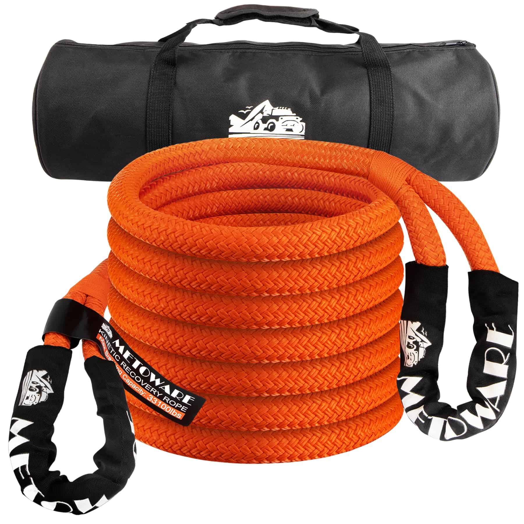 2. DURADERA Y CONFIABLE: La Cuerda de Remolque METOWARE se estira hasta un 30%, reduciendo en gran medida la carga de choque que se aplica al punto de conexión en el vehículo que estés utilizando. Resistencia a la ruptura de más de 35,000 libras. Es ideal para cualquier recuperación de vehículos todoterreno.