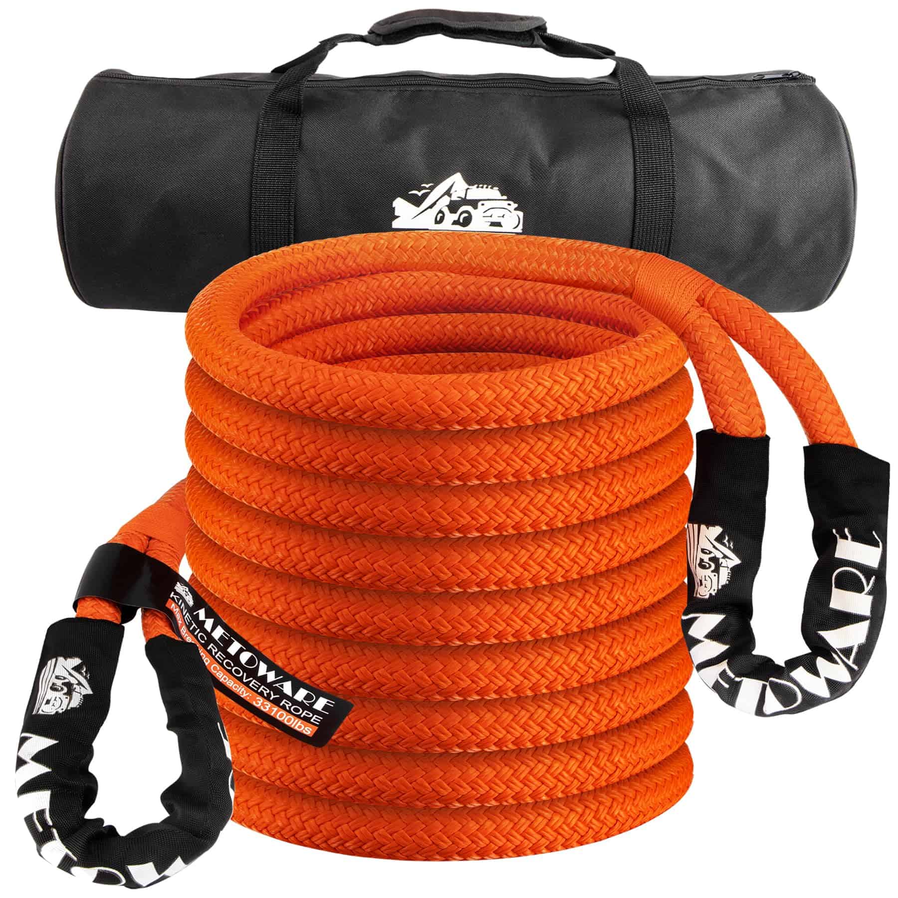 1. CUERDA DE REMOLQUE RESISTENTE: Hecho de material de nylon doble trenzado al 100%, con resistencia a la abrasión súper y resistencia ultraduradera a los rayos UV, lo que hace posible que la cuerda cinética METOWARE funcione al máximo en diferentes escenarios.