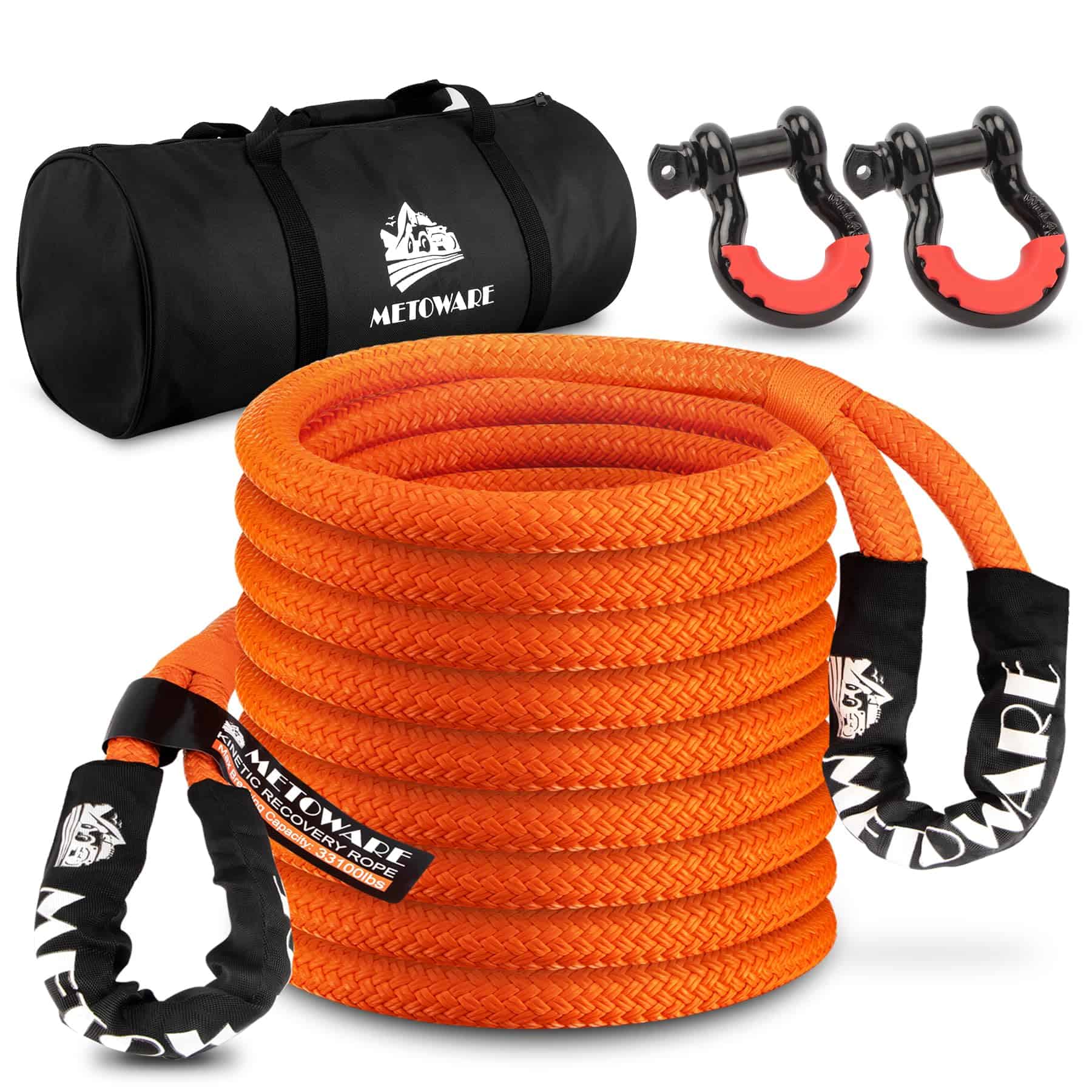 2. DURADERA Y CONFIABLE: La Cuerda de Remolque METOWARE se estira hasta un 30%, reduce en gran medida la carga de choque que se aplica al punto de conexión del vehículo que estás usando. Resistencia a la rotura de más de 35,000 lbs. Ideal para cualquier recuperación de vehículos todoterreno.