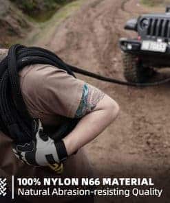 La cuerda de recuperación SAMOUT es un producto imprescindible para cualquier aventura todoterreno. Con una resistencia a la rotura de 48000 lbs y límite de carga de trabajo de 16000 lbs, esta cuerda cinética de nylon N66 de doble trenzado recubierta con polímeros Mil-spec es ideal para sacar a vehículos atascados de la arena, barro o rocas. Incluye 2 suaves eslingas UHMWPE Soft Shackle que son más seguras y fuertes que los anillos de remolque metálicos tradicionales. La cuerda larga de 20 pies y 1 pulgada de diámetro ofrece un rendimiento excepcional sin dañar el chasis del vehículo. Diseñada para durar, esta cuerda de recuperación es resistente a la abrasión y viene con una bolsa impermeable de transporte para llevarla a cualquier parte con facilidad.