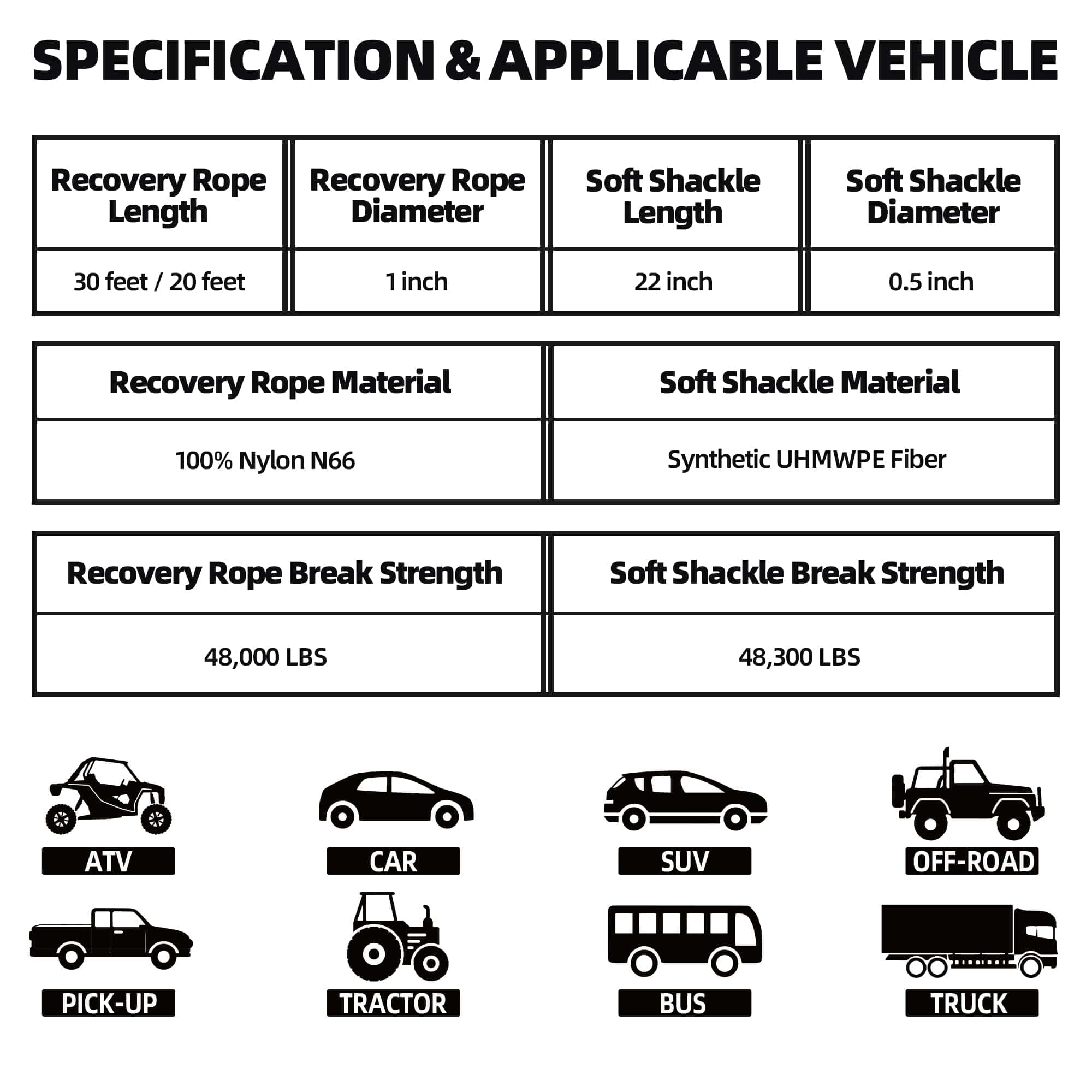 Cuerda de Recuperación Cinética SAMOUT (48000 lbs 1in x