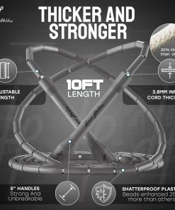 2. Fácil de ajustar y tamaño Ajusta fácilmente la longitud de la cuerda de saltar a tu preferencia. Diseñada con una longitud de 10′, es perfecta para personas de hasta 6’4″ de altura. Para un ajuste personalizado, deshaz el lazo del extremo del mango, ajusta las cuentas según sea necesario y corta el exceso de cuerda. Sumérgete en tu rutina de ejercicio de inmediato.