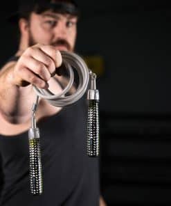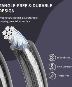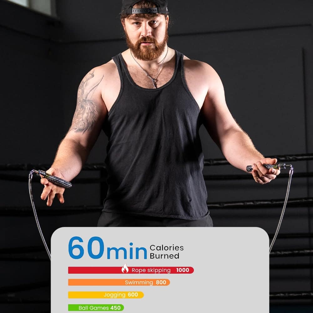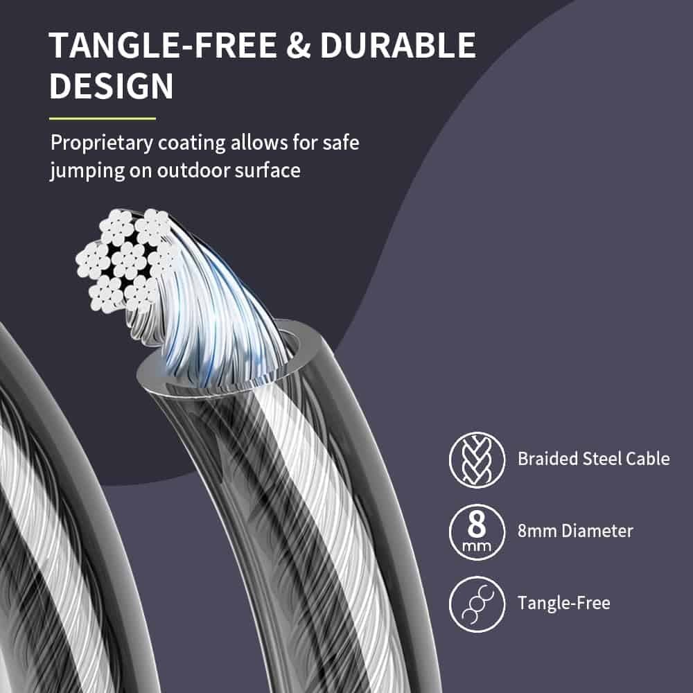 Cuerda de saltar con peso Hererope para hombres y mujeres es el equipo perfecto para entrenamientos de fitness de alta intensidad y crossfit. Con un diseño duradero y sin enredos, esta cuerda de saltar de 1 libra está hecha con un cable de acero de 8 mm de grosor que puede resistir un uso regular en diversas superficies exteriores como concreto o asfalto sin deshilacharse ni romperse fácilmente. La cuerda de saltar está equipada con mangos de cuero PU que absorben el impacto y proporcionan un agarre suave y cómodo, reduciendo la tensión en manos y muñecas durante entrenamientos largos. Los mangos contorneados de diseño ergonómico se ajustan a la forma natural de tu mano, reduciendo la fatiga de la mano durante entrenamientos más largos. Además, HEREROPE ofrece 4 tamaños (S/M/L/XL) para ajustarse a la altura de los usuarios, permitiéndote elegir la longitud de la cuerda adecuada. Los rodamientos de bolas en la cuerda permiten un giro suave con menos fricción, lo que posibilita rotaciones más rápidas, reduciendo la tensión en muñecas y hombros y brindándote una experiencia de salto suave y eficiente. Con la cuerda de saltar con peso Hererope, podrás optimizar tus entrenamientos al abordar tu cardio y entrenamiento de peso en un solo movimiento, quemando más calorías, trabajando más grupos musculares y logrando un entrenamiento total efectivo en menos tiempo que el entrenamiento de peso o cardio solo.