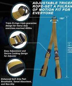 Esta cuerda de tríceps es un elemento esencial para cualquier gimnasio doméstico o comercial. Está diseñada para ayudarte a fortalecer y tonificar los músculos de la parte superior de tu cuerpo, incluyendo bíceps, tríceps y hombros. Esta cuerda está hecha de materiales de alta calidad y está construida para ser duradera y confiable, proporcionándote una herramienta de entrenamiento resistente y duradera. La cuerda cuenta con un mango cómodo y antideslizante que te permite sujetarlo de manera segura durante tus entrenamientos. También es ajustable, lo que te permite personalizar la longitud de la cuerda según tu nivel de fitness y necesidades de ejercicio. Esta cuerda es perfecta para una amplia gama de ejercicios, incluyendo empujes de tríceps, extensiones de tríceps y curls de bíceps.