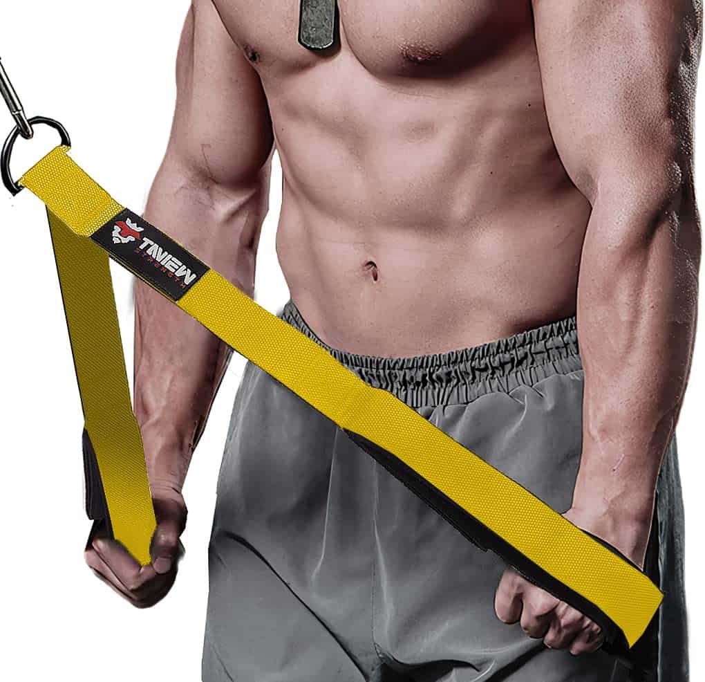 Disfruta de la cuerda de tríceps TAVIEW para cable, la cual te ofrece un diseño único con dos longitudes de asa para facilitar tus ejercicios y mejorar tu forma. Fabricada con materiales de primera calidad, esta correa resistente está compuesta por una mezcla de algodón, poliéster y neopreno que soportará cualquier demanda que le pongas. Además, cuenta con un D Ring extra resistente que te permitirá cargar cómodamente todos los pesos necesarios para el desarrollo muscular máximo.