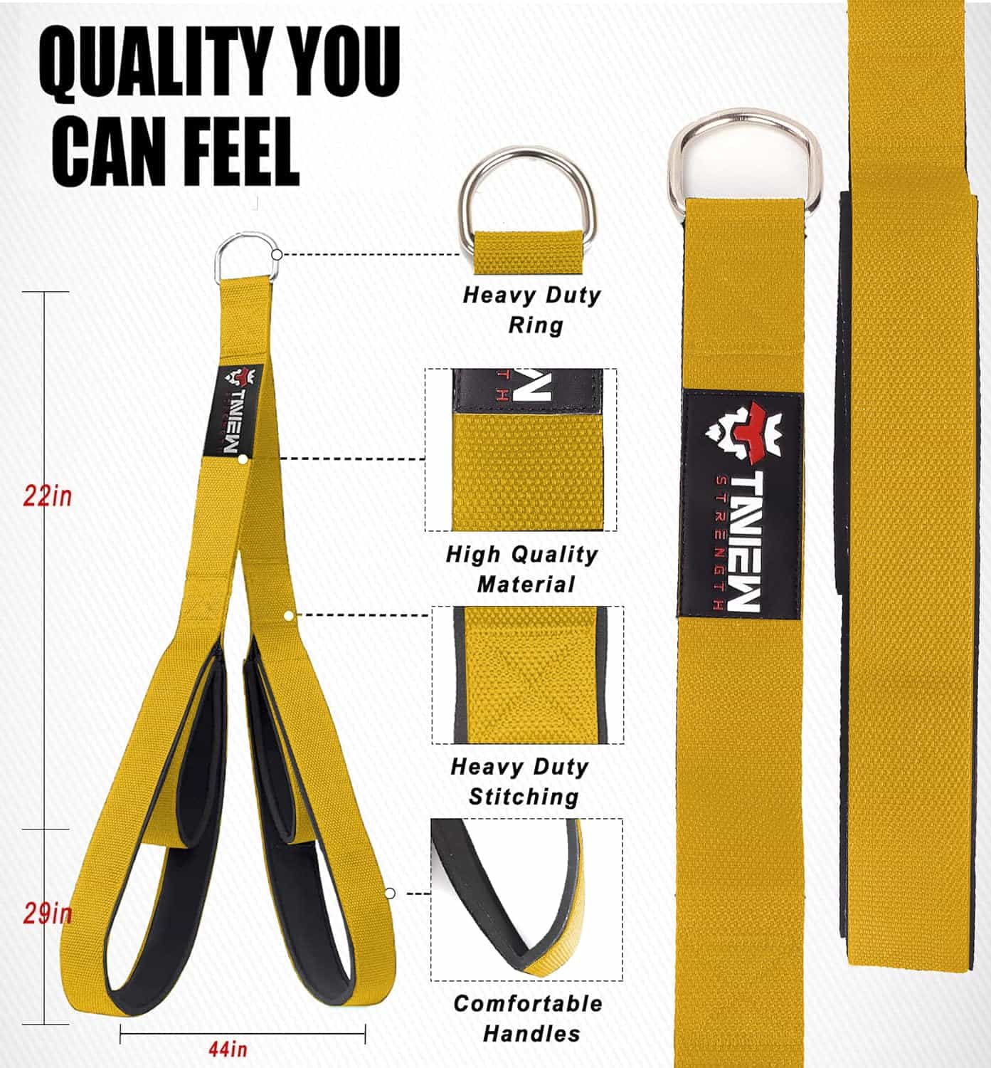 Descubre un agarre más cómodo y seguro con las asas de neopreno que brindan un fuerte agarre resistente al sudor, evitando resbalones mientras minimizan el estrés en tus muñecas. Con la cuerda de tríceps TAVIEW, podrás enfocarte en tu forma sin preocuparte por la resistencia del material. ¡Consigue ahora la satisfacción garantizada con nuestra garantía contra defectos de fabricación!