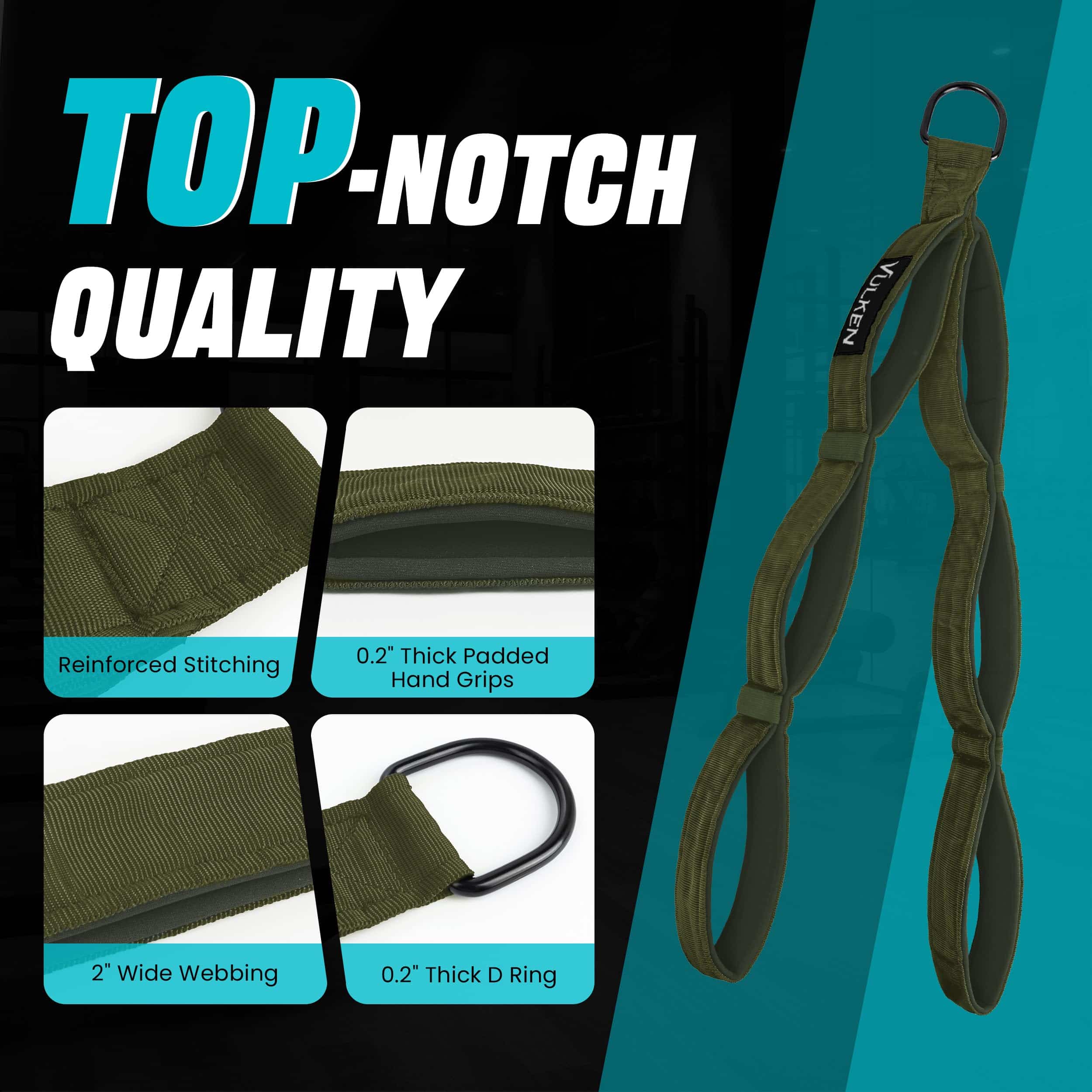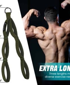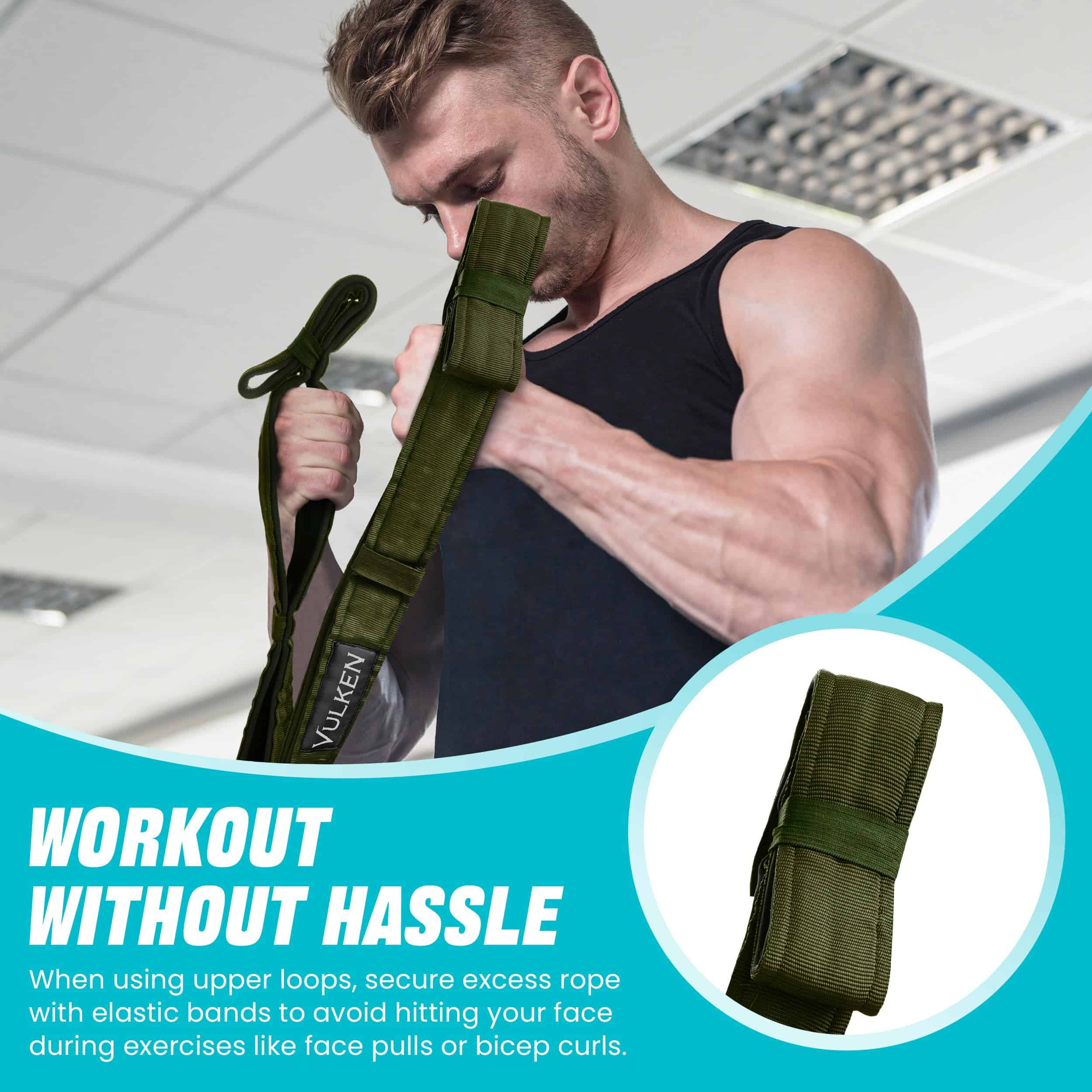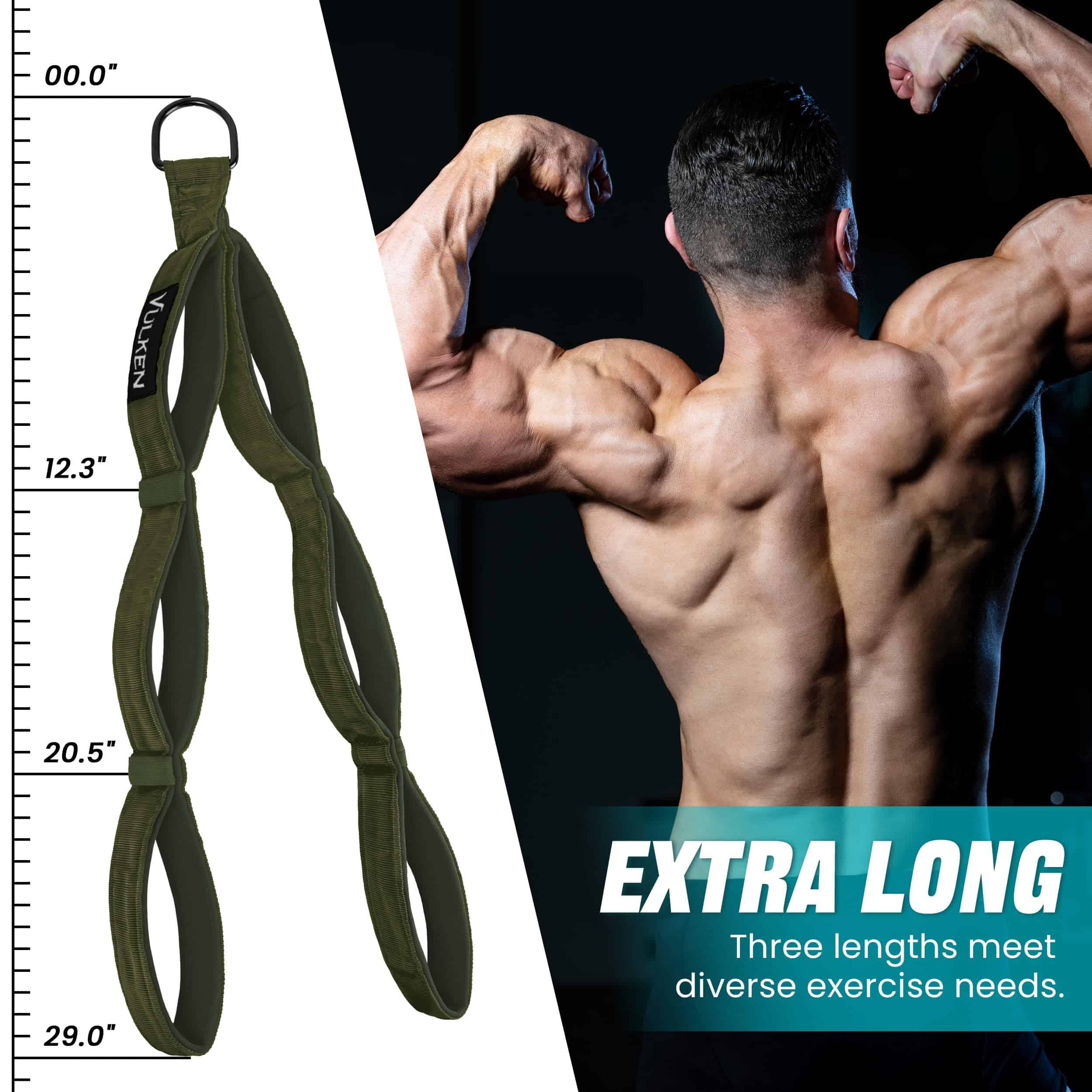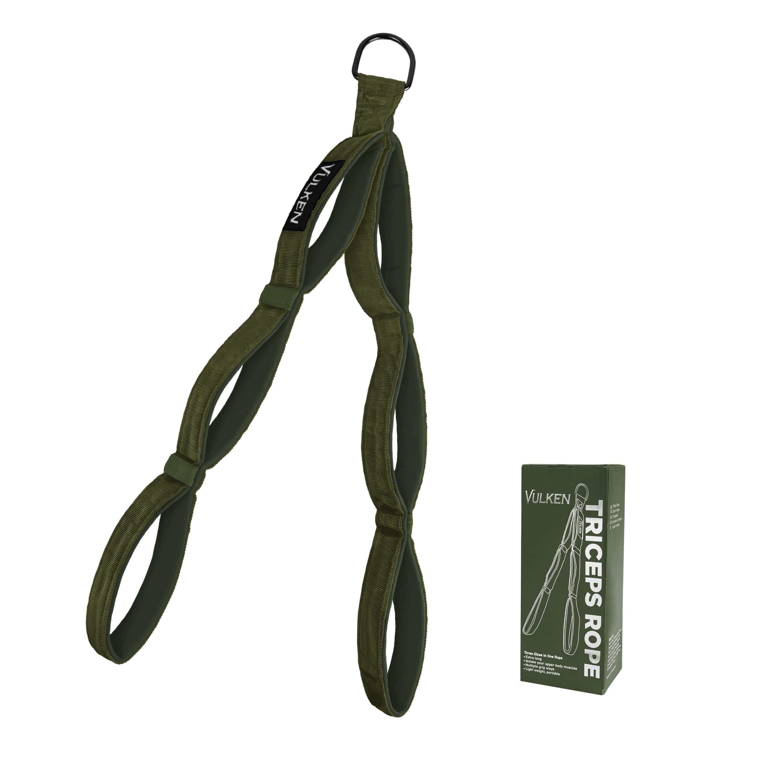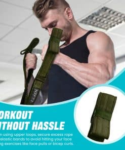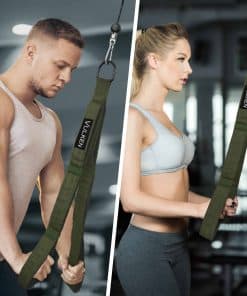 Cuerda de tríceps Vulken para gimnasio, diseñada para brindar versatilidad y comodidad durante tus entrenamientos. Esta cuerda de tríceps extra larga de tres longitudes en uno te permite cambiar rápidamente entre 29″, 20.5″, y 12.3″ de largo, adaptándose a diferentes ejercicios y tamaños corporales. Con su exclusivo diseño, ya no tendrás que preocuparte por cambiar entre múltiples cuerdas de tríceps para realizar diferentes ejercicios. Simplemente ajusta la longitud que necesitas y disfruta de una mayor libertad de movimiento para ejercicios como face pulls, fondos de tríceps, curl de bíceps, y más. Las correas de tríceps extra largas de Vulken permiten un rango de movimiento extendido, evitando limitaciones en tus entrenamientos. Además, su ergonómico diseño con 4 opciones de agarre te brinda la comodidad necesaria para proteger tus articulaciones, evitando lesiones y maximizando los resultados de tu entrenamiento. ¡Añade esta cuerda de tríceps a tu equipamiento de gimnasio y lleva tus entrenamientos al siguiente nivel!