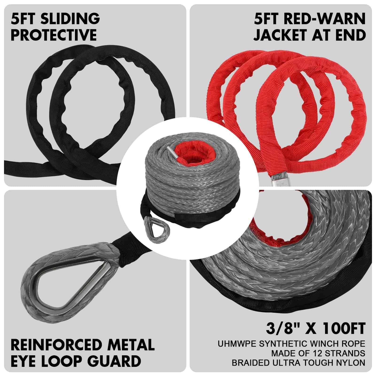 Cuerda de Winch Sintética ZESUPER 3/8″ x 100ft Dyneema 12