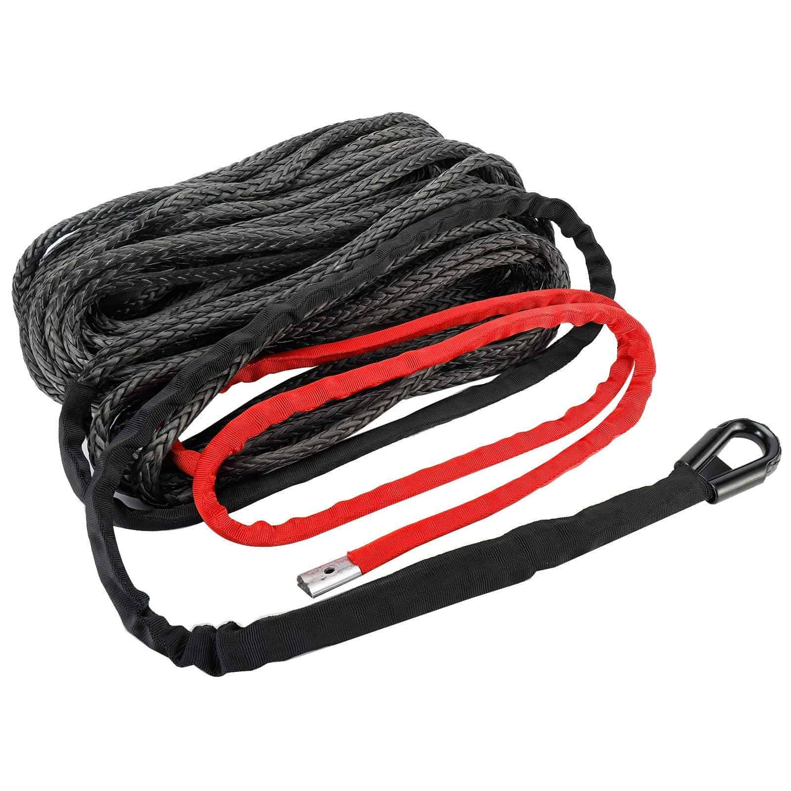 Cuerda de Winche Sintética 95ft x 3/8″ 20500LBs Cable de Linea de Winche con Funda Protectora Roja Compatible con ATV UTV Camión