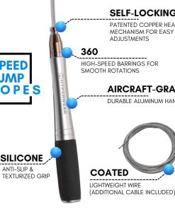 La Cuerda para Saltar de Velocidad Ajustable Hyperwear está diseñada para atletas de alto rendimiento y entusiastas del fitness. Ya sea para CrossFit, boxeo o cardio en general, esta cuerda ofrece velocidad y conveniencia incomparables. Ajusta la longitud de la cuerda rápidamente con el mecanismo patentado de cabeza de cobre auto-bloqueante, haciéndola adecuada para usuarios de todas las alturas. Los rodamientos de alta velocidad garantizan giros suaves y sin enredos, perfectos para realizar double-unders y mejorar la agilidad. Fabricada con mangos de aluminio de grado aeronáutico recubiertos en silicona antideslizante, la cuerda se mantiene segura en tus manos, incluso durante sesiones intensas. El cable ligero de alambre recubierto ofrece durabilidad y velocidad, reduciendo la resistencia en cualquier superficie. Como bono, cada cuerda para saltar incluye un cable de alambre extra, asegurando entrenamientos ininterrumpidos.