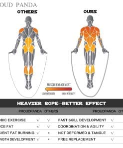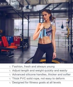 Este es el milagroso salto de cuerda. Viene con telas de alta calidad, mano de obra exquisita, diseño sencillo y elegante, así como opciones de colores frescos que te harán feliz y disfrutar cuando saltes la cuerda. Es dos veces más efectivo que la cuerda de saltar ordinaria por las ventajas que incluyen no sacudir, no enredar la cuerda y velocidad ajustable. Es más firme que la cuerda de saltar con rodillo, más suave que la cuerda de alambre de acero y más duradera que la cuerda de cáñamo. Diseñado con longitud de 9.9 pies, diámetro de 0.35 pulgadas y un peso de 0.28 libras. Puede ser fácilmente ajustado según diferentes alturas. Es más pesado que la cuerda de saltar ordinaria, y los objetos pesados en el mango pueden ser instalados de acuerdo a diferentes necesidades de ejercicio, adecuado para principiantes, hombres, mujeres, niños, atletas profesionales y expertos en fitness. Con esta cuerda de saltar, puedes hacer ejercicio en cualquier lugar. El mango ergonómicamente diseñado envuelto en silicona gruesa te harán sentir suave y cómodo. Diseñado con textura de onda, resistente al desgaste y antideslizante, para que no te canses después de un agarre prolongado. El mango de la esponja es fácil de romper, olerá mal cuando sudes mucho. El mango de acero es antideslizante y difícil de sostener. Date prisa y agrégalo al carrito de compras. Hacer ejercicio 5 minutos todos los días puede darte una buena forma física. Nuestra cuerda de saltar con peso puede entrenar tu resistencia y velocidad, mejorar la intensidad muscular de todo tu cuerpo y definir músculos quemando grasa. Esta cuerda de saltar ponderada es ideal para entrenamientos de fitness, Cross fit, entrenamiento, ejercicio de salto, artes marciales mixtas, boxeo, gimnasio, entrenamiento de velocidad, pantorrillas, muslos y fortalecimiento del antebrazo, entrenamiento de piernas y resistencia. Tenemos una garantía de calidad a largo plazo: garantía de 12 meses. Si tienes alguna pregunta sobre nuestros productos o servicios, no dudes en contactarnos por correo electrónico, y haremos todo lo posible para ayudarte.