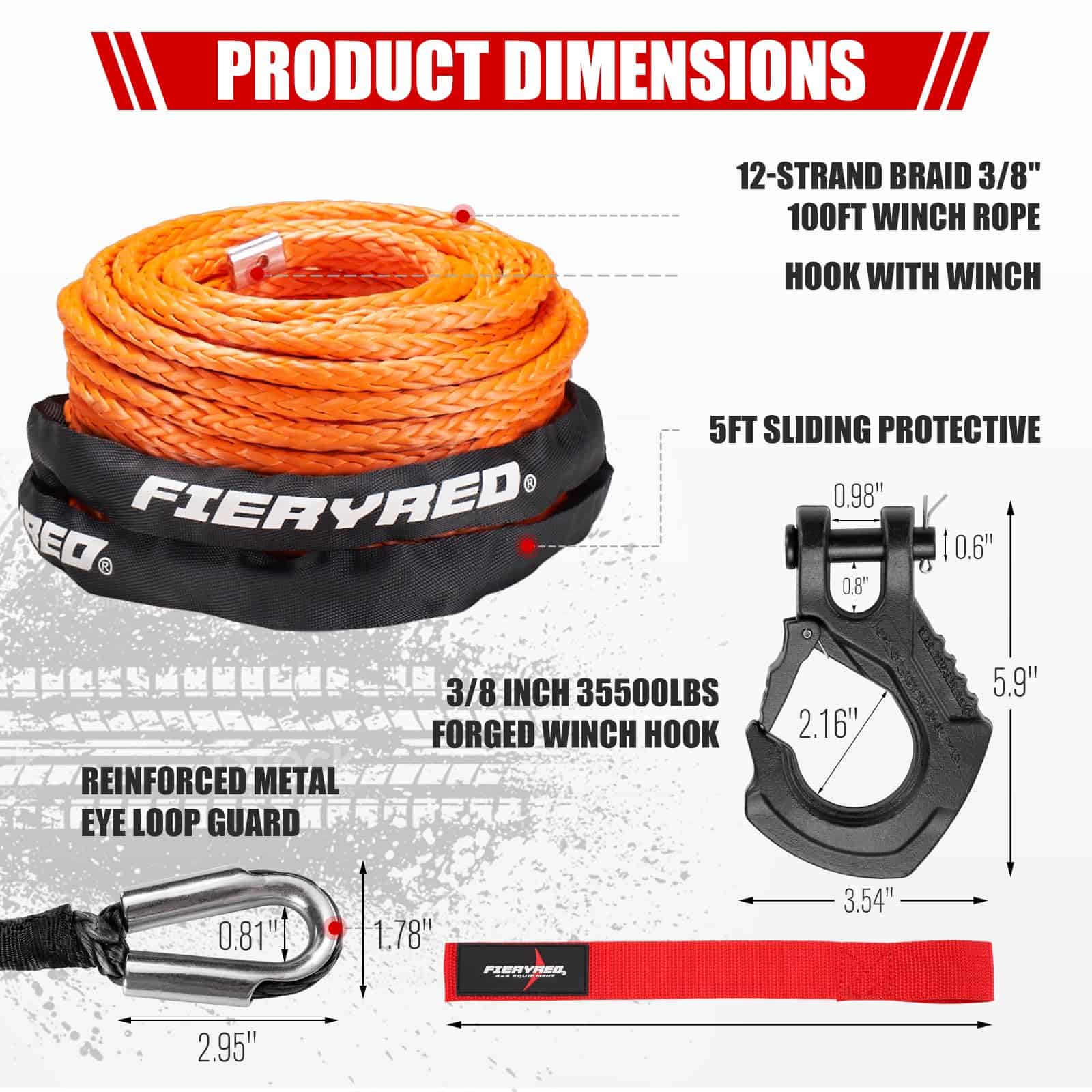 Cuerda Sintética para Winch FIERYRED 3/8 pulgadas 100FT