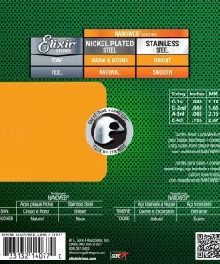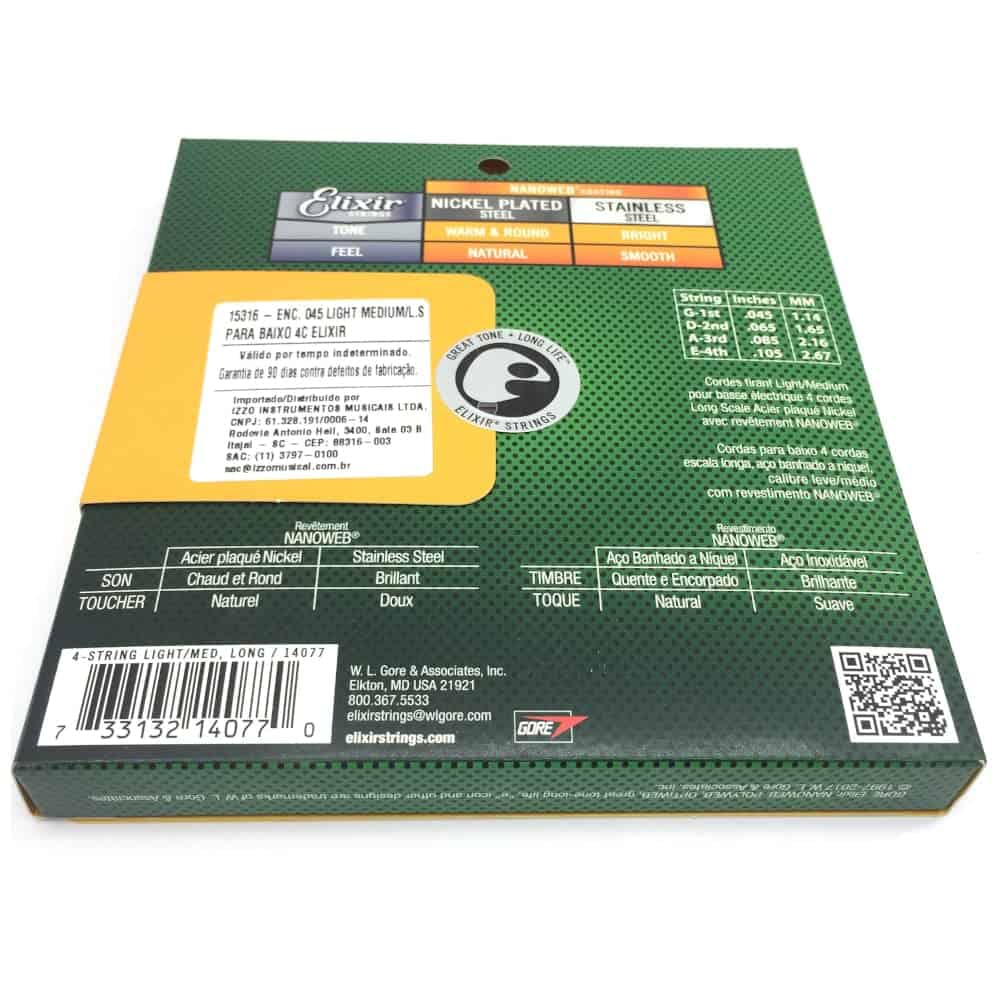 Siga tocando (y tocando y tocando) con las mismas cuerdas eléctricas de bajo premium en las que confían los músicos experimentados de todo el mundo para mantener su increíble tono más tiempo que cualquier otra cuerda disponible. Específicamente desarrolladas en base a los comentarios detallados de más de mil bajistas como tú, nuestra selección a medida de cuerdas de bajo incluye orgullosamente opciones de construcción en acero niquelado y acero inoxidable, juegos de cuatro, cinco y seis cuerdas, escalas largas y extra largas, y prácticamente todos los calibres que puedas necesitar. Todo con nuestra innovadora tecnología de recubrimiento de cuerdas. Y a diferencia de otras marcas de cuerdas, Elixir Strings recubre toda la cuerda. Esto protege no solo la superficie exterior de la cuerda, sino también los espacios entre las vueltas donde comúnmente se acumula suciedad que apaga el tono en otras marcas de cuerdas de guitarra recubiertas y sin recubrir. ¿A quién no le gustaría tener más tiempo de calidad de reproducción entre el problema y el costo de los cambios de cuerdas Premium por diseño, estas cuerdas de bajo eléctrico construidas con alambre de envoltura de acero niquelado cuentan con un tono rico, redondeado con una increíble claridad y una fuerte presencia en medios. Mientras tanto, el recubrimiento NANOWEB ultrafino, rediseñado específicamente para bajos, permite una sensación suave y natural que también mejora el agarre y reduce el chirrido de los dedos. Para un tono de bajo más brillante, prueba nuestras Cuerdas de Bajo de Acero Inoxidable con Recubrimiento NANOWEB. Por supuesto, el tipo de cuerda que toques es cuestión de preferencia personal. ¿No estás seguro de cuál es el tono adecuado para ti Pruébalas tú mismo y encuentra tu nueva cuerda favorita de Elixir Strings. Para obtener más información detallada sobre qué hace que nuestras cuerdas sean tan especiales, desplázate hacia la información de marca más abajo en la página. Elixir Strings: Gran tono. Vida larga.