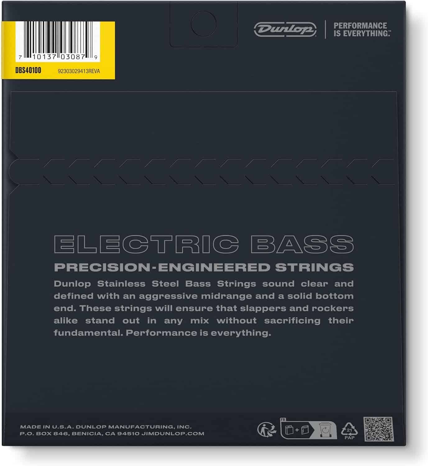 Cuerdas de bajo de acero inoxidable Dunlop DBS40100, Luz,