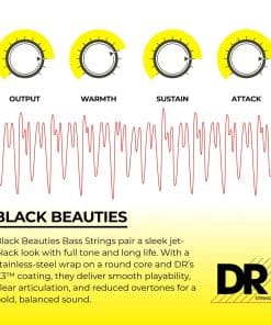 Las cuerdas negras BLACK BEAUTIES para bajo no son solo sobre el aspecto elegante y sofisticado. Cuentan con un alambre central redondo y un alambre de envoltura de acero inoxidable para mantener el brillo y la sensación. Todas las cuerdas del conjunto están recubiertas con una versión jet-black de DR’s K3, un recubrimiento ultra resistente, que ofrece longevidad, más proyección, menos sobretonos no deseados y una claridad y articulación sobresalientes.