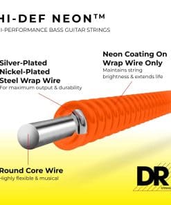 Cuerdas de bajo naranjas NEON con tecnología K3. El recubrimiento K3 es el primer recubrimiento del que los músicos dicen que «suena tan bien o mejor que las cuerdas sin recubrimiento». La sorprendente y exclusiva tecnología de recubrimiento K3 de DR es el primer recubrimiento que no se disculpa ni ofrece excusas por no ofrecer un sonido igual al de las cuerdas sin recubrimiento. Los músicos nos dicen que estas cuerdas tienen más volumen, menos sobretonos no deseados, mayor claridad y articulación que las cuerdas estándar sin recubrimiento. Sin embargo, proporcionan la misma protección contra la corrosión y la transpiración, así como una mayor vida útil del tono que se conoce en las cuerdas recubiertas. De fabricante DE HI-DEF NEON, las cuerdas de bajo Color Coated están disponibles en una amplia variedad de opciones de color luminiscente diseñadas para darle a tu presencia en el escenario un poco más de brillo, especialmente bajo iluminación negra UV. Tienen un núcleo redondo y un envoltorio de acero niquelado plateado. Todas las cuerdas incluyen el recubrimiento de color K3, que ofrece longevidad, más proyección, menos sobretonos no deseados, además de una claridad y articulación mejoradas.