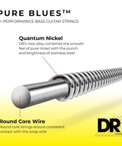 Las cuerdas de bajo DR Pure Blues combinan el tono cálido del níquel puro con el brillo y la nitidez del acero inoxidable para una cuerda rica y tonalmente equilibrada que es perfecta para los músicos que demandan versatilidad. Ya sea que toques con los dedos, con una púa o con slap, tu bajo cobrará vida con un bajo completo, medios coloridos y agudos brillantes y articulados. Las cuerdas de bajo PURE BLUES utilizan un alambre de envoltura Quantum Nickel, que combina el tono cálido del níquel con el brillo y la nitidez del acero inoxidable para una cuerda rica y tonalmente equilibrada que es perfecta para los músicos que demandan versatilidad. Un núcleo redondo aumenta la flexibilidad de la cuerda para producir una sensación insuperable. Ya sea que toques con los dedos, con una púa o con slap, tu bajo cobrará vida con un bajo completo, medios coloridos y agudos brillantes y articulados.